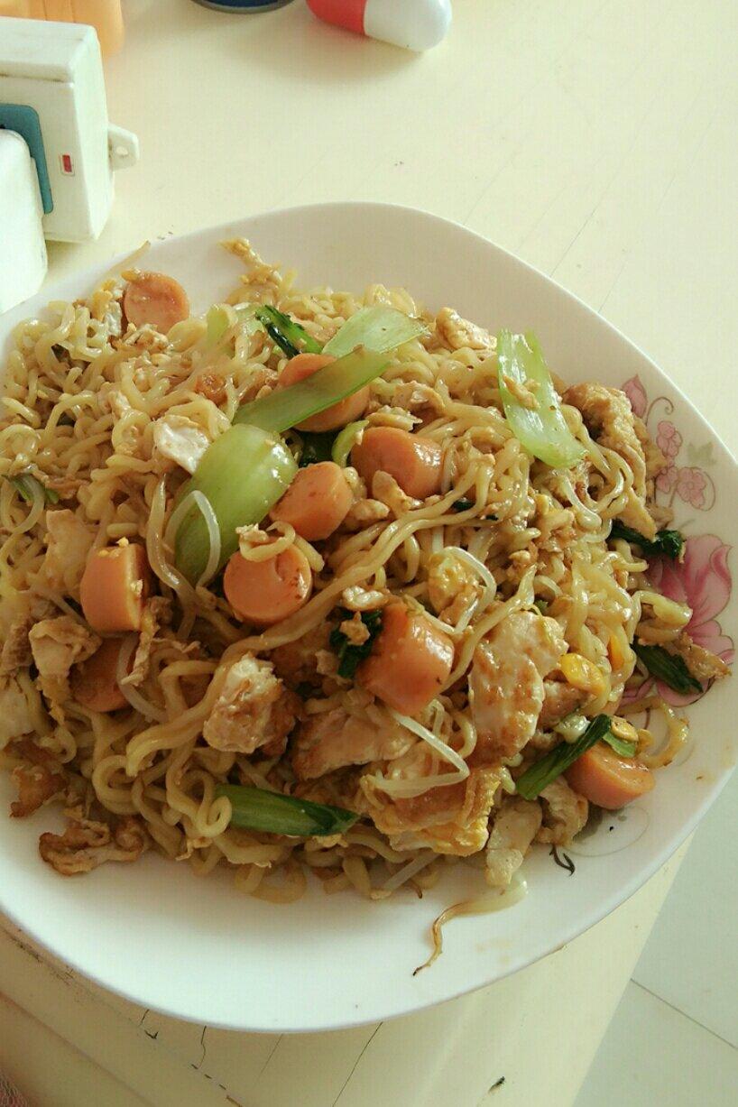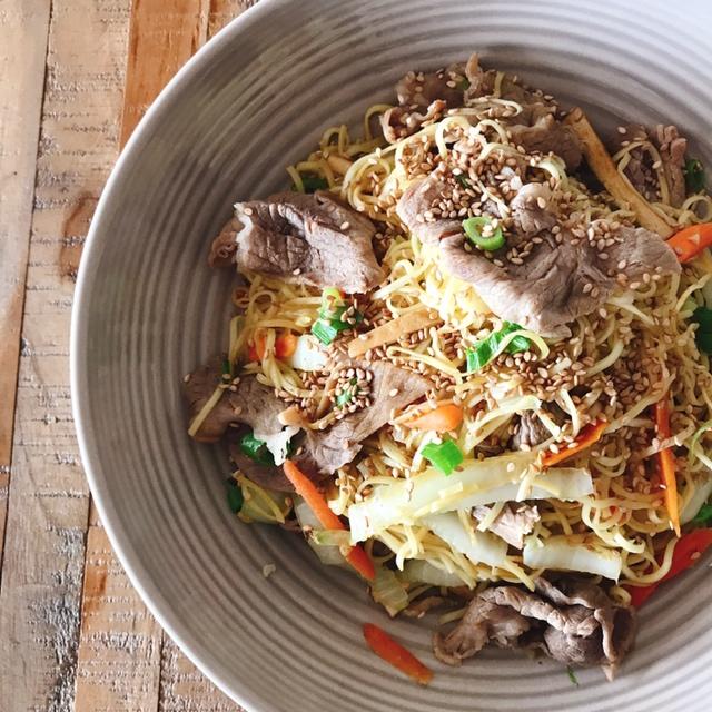 手一抖芝麻下去一半的牛肉白菜胡萝卜豆干炒面