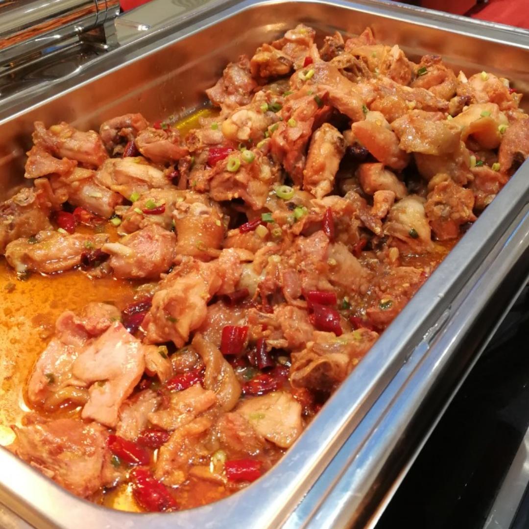 咸香辣蒸滑鸡,肉嫩油润。中央的冰柜厨师们随时打开更换食材。现磨咖啡很给力,服...