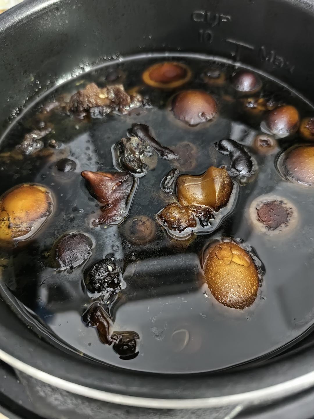 照上面方法煮的.......半只前蹄+几个鸡蛋+姜+一瓶致美斋甜+一小碗水+一点白醋,,好吃,真不错。谢谢!#甜醋猪脚姜...