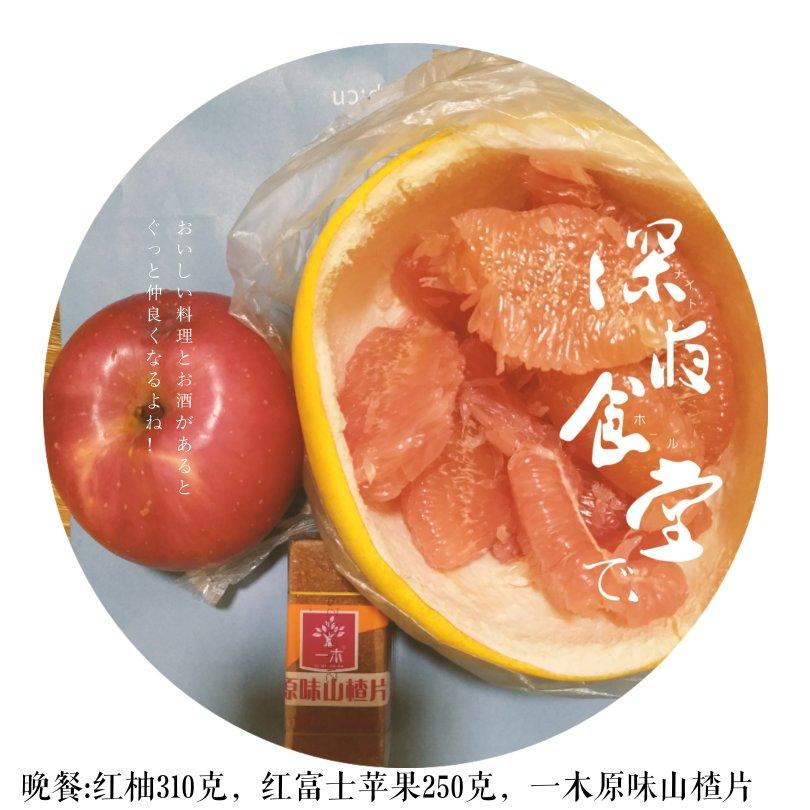晚餐:红柚310克,红富士苹果250克,一木原味山楂片