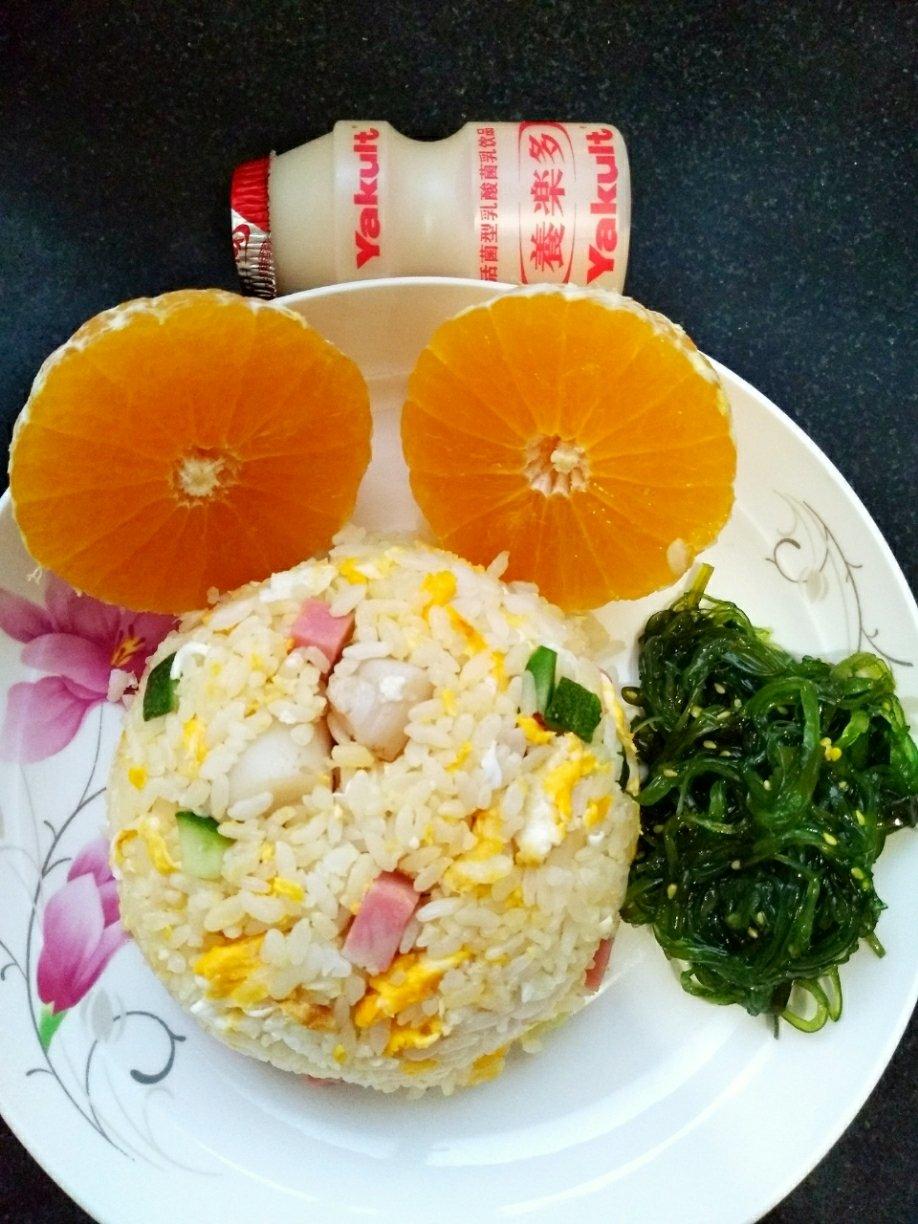 蛋炒饭+日式海草+果冻橙+养乐多