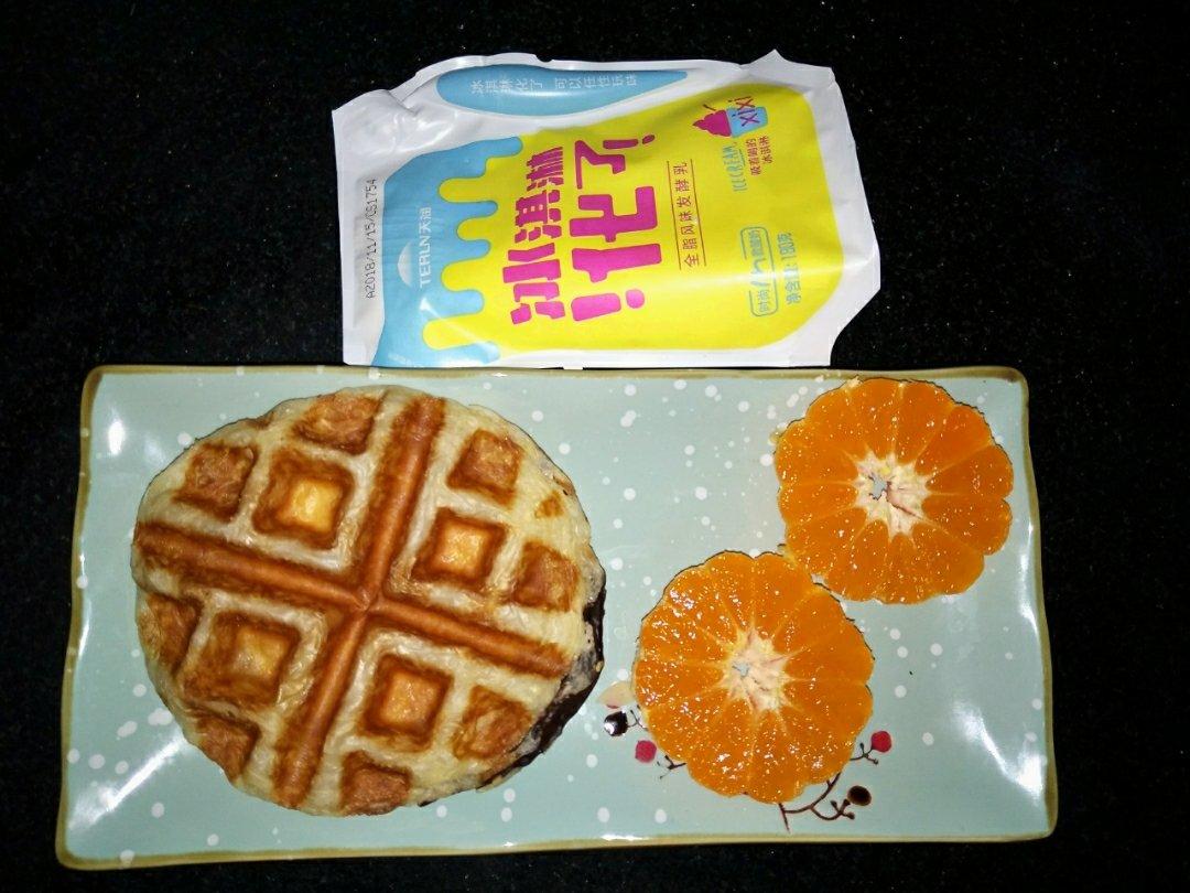 华夫饼+桔子+酸奶