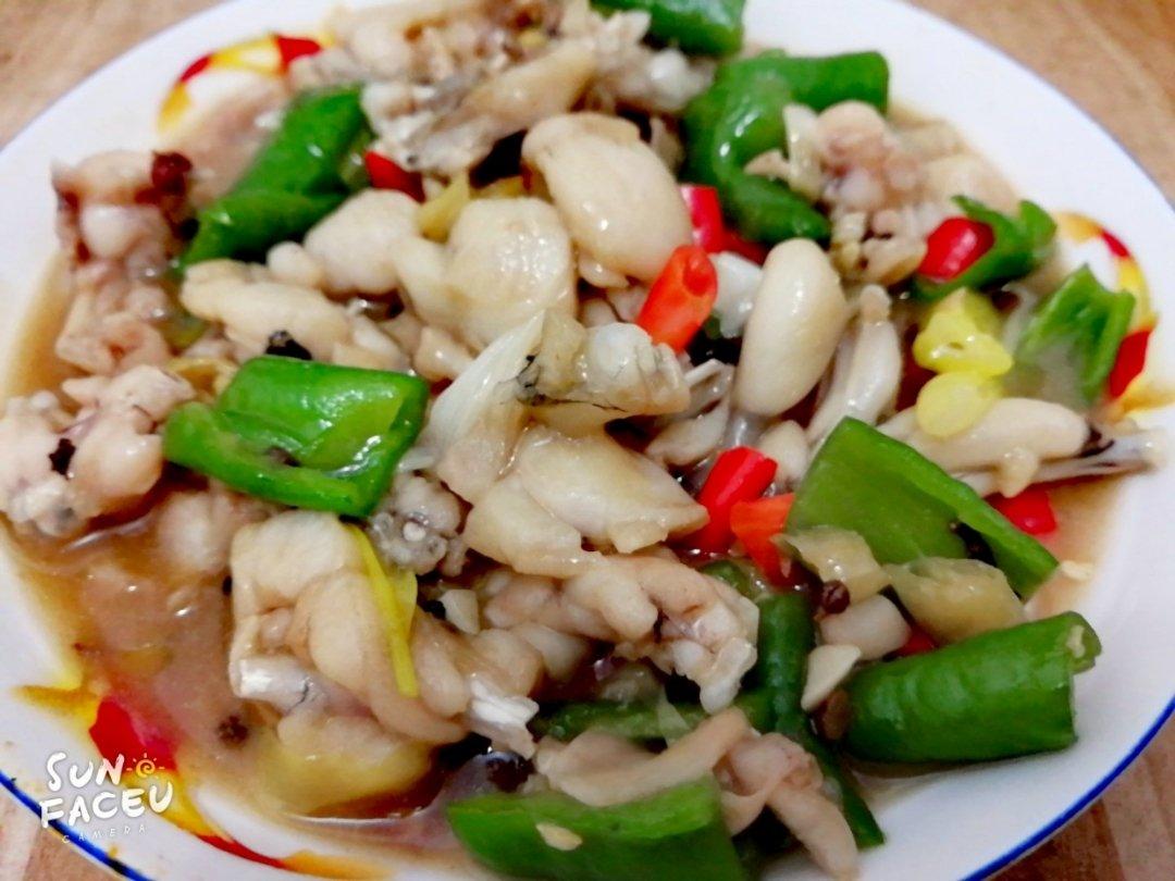 椰子炖鸡,蒜香信鲍菇,日本豆腐,辣椒炒鸡胗,甜玉米荷兰豆炒虾仁