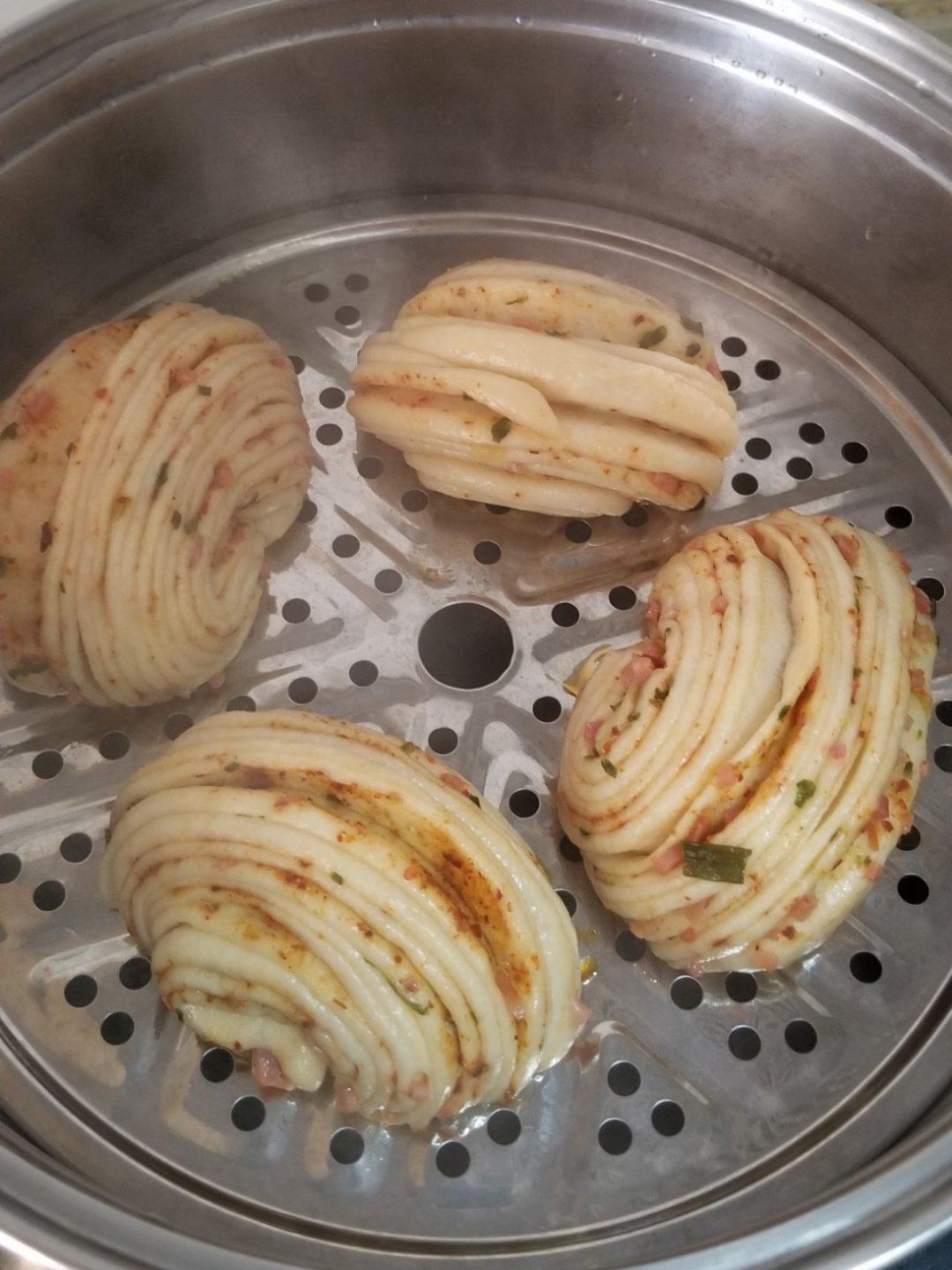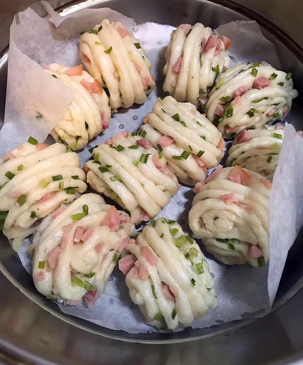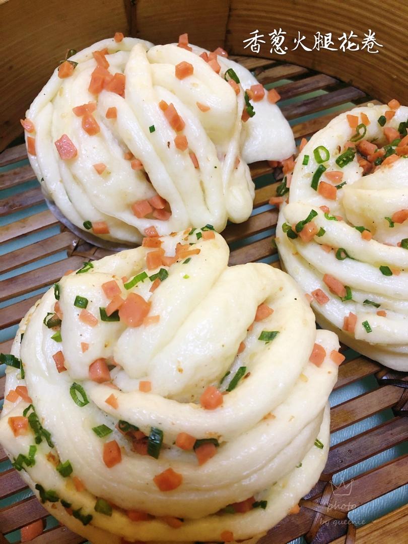 #香葱火腿花卷#