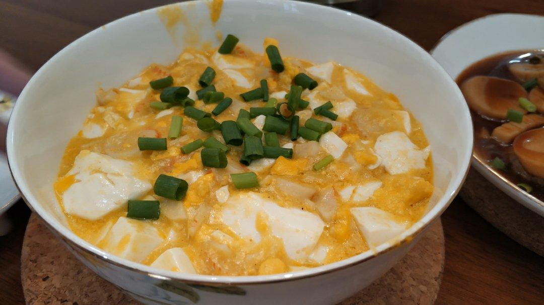 蟹黄豆腐,已经做第3回了,我觉得有放虾仁跟没放虾仁一样好吃😍,周末给儿子加餐,也祝各位厨友们,端午安...