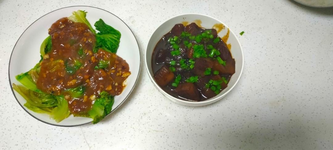 红烧冬瓜和生蚝生菜