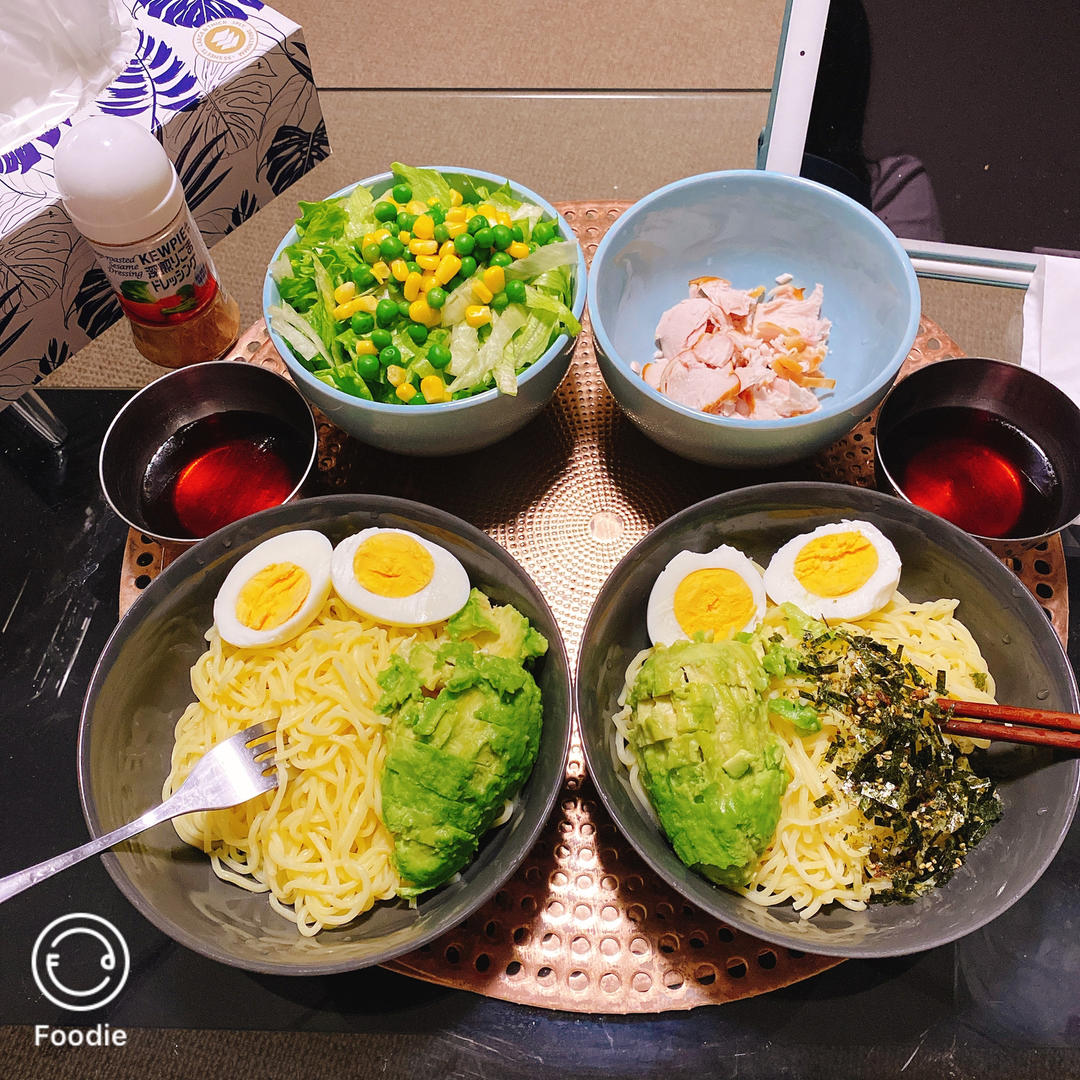这礼拜才认识日式冷面,惭愧……然后就在日本超市发现了这包方便的面条加调味汁儿。然后自己加了牛油果,弄了沙...