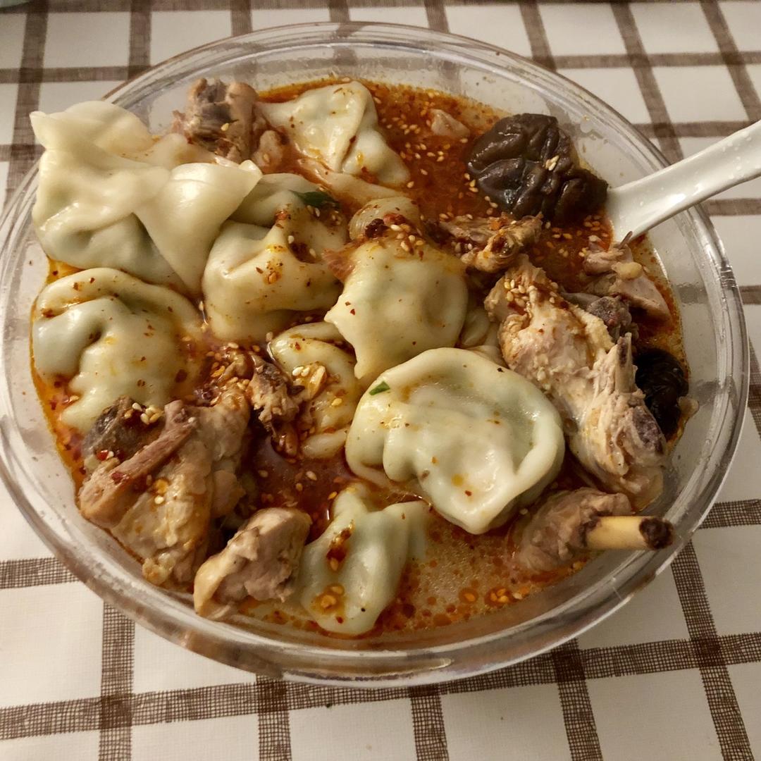 手作鸡汤大馄饨,配上自己的油泼辣子,美味!