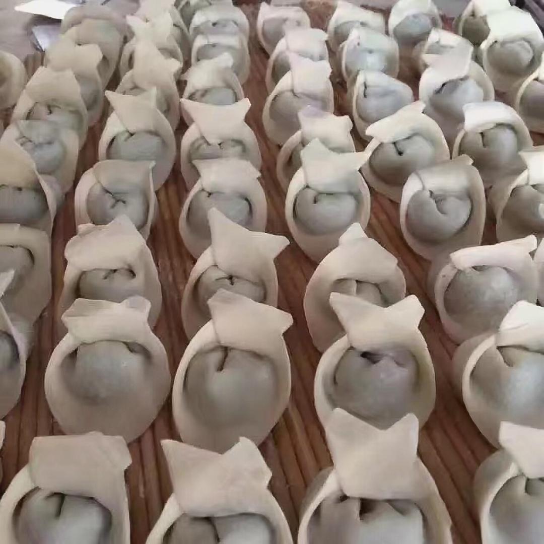 为庆祝下元节的夜,刚包的巨型大馄饨,芹菜、猪肉、胡萝卜、木耳……