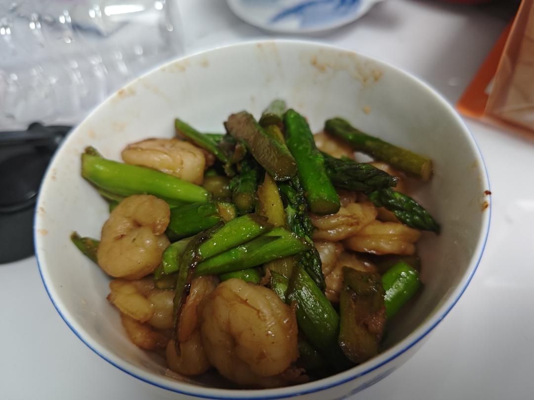 忘了用滚刀切芦笋,感觉不是很入味。但是焯水过的还是脆香的,虾仁腌的时候放的盐有点多了,部分有点咸咸的。不过总体来说还算可...