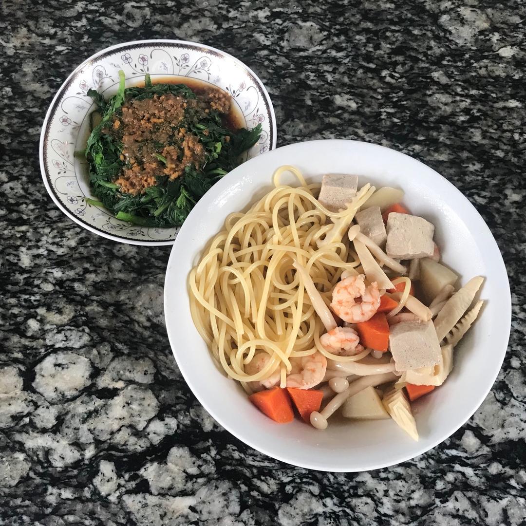下雨什么都不想干,还好冰箱里有昨天做好的汤,再煮个菜,下个面,15分钟搞定#午餐•20...