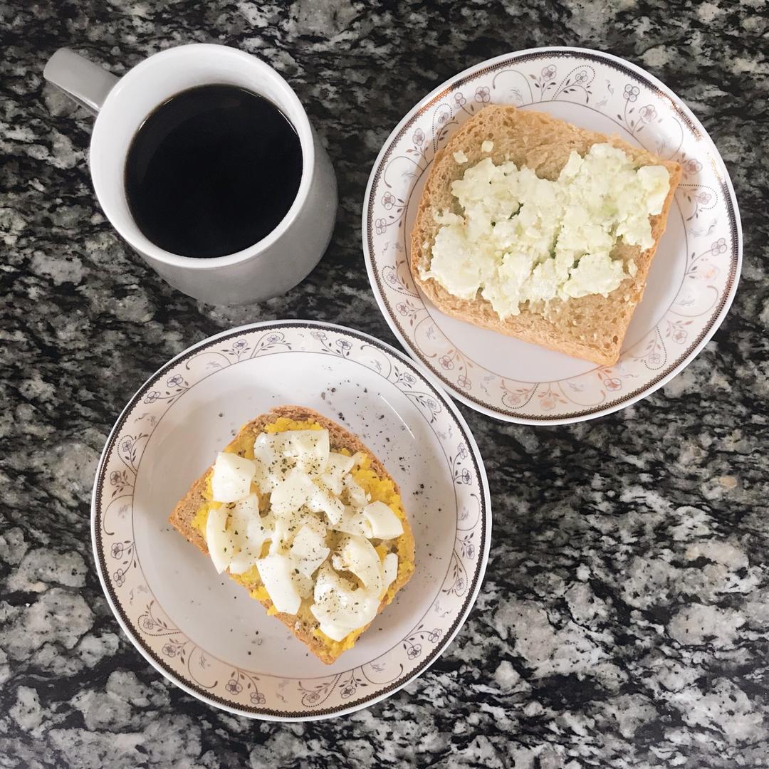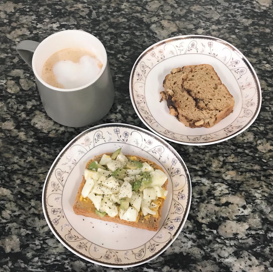 鸡蛋蜂蜜三明治,肉桂卷QB,拿铁