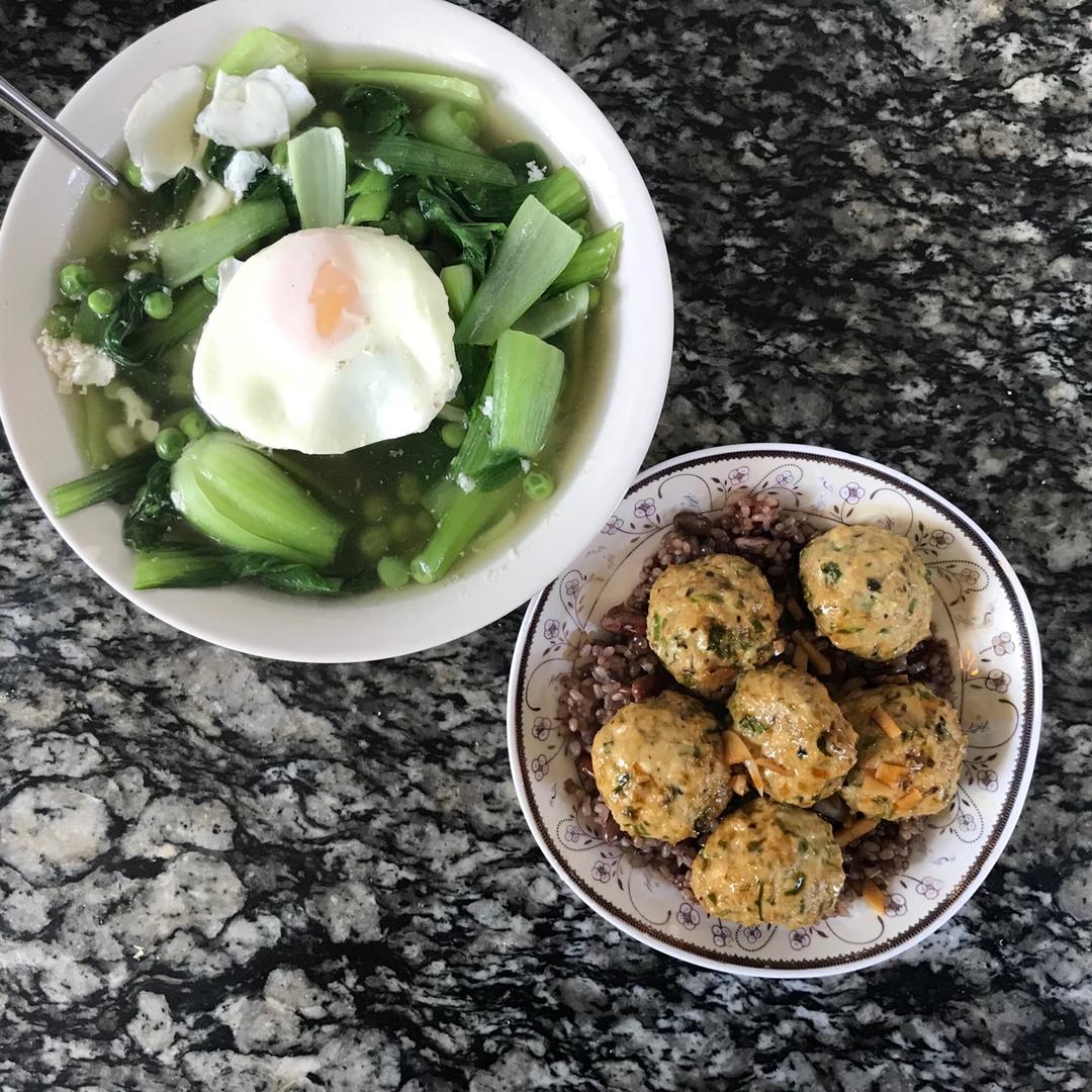 鸡汤煮了个青菜豌豆鸡蛋汤