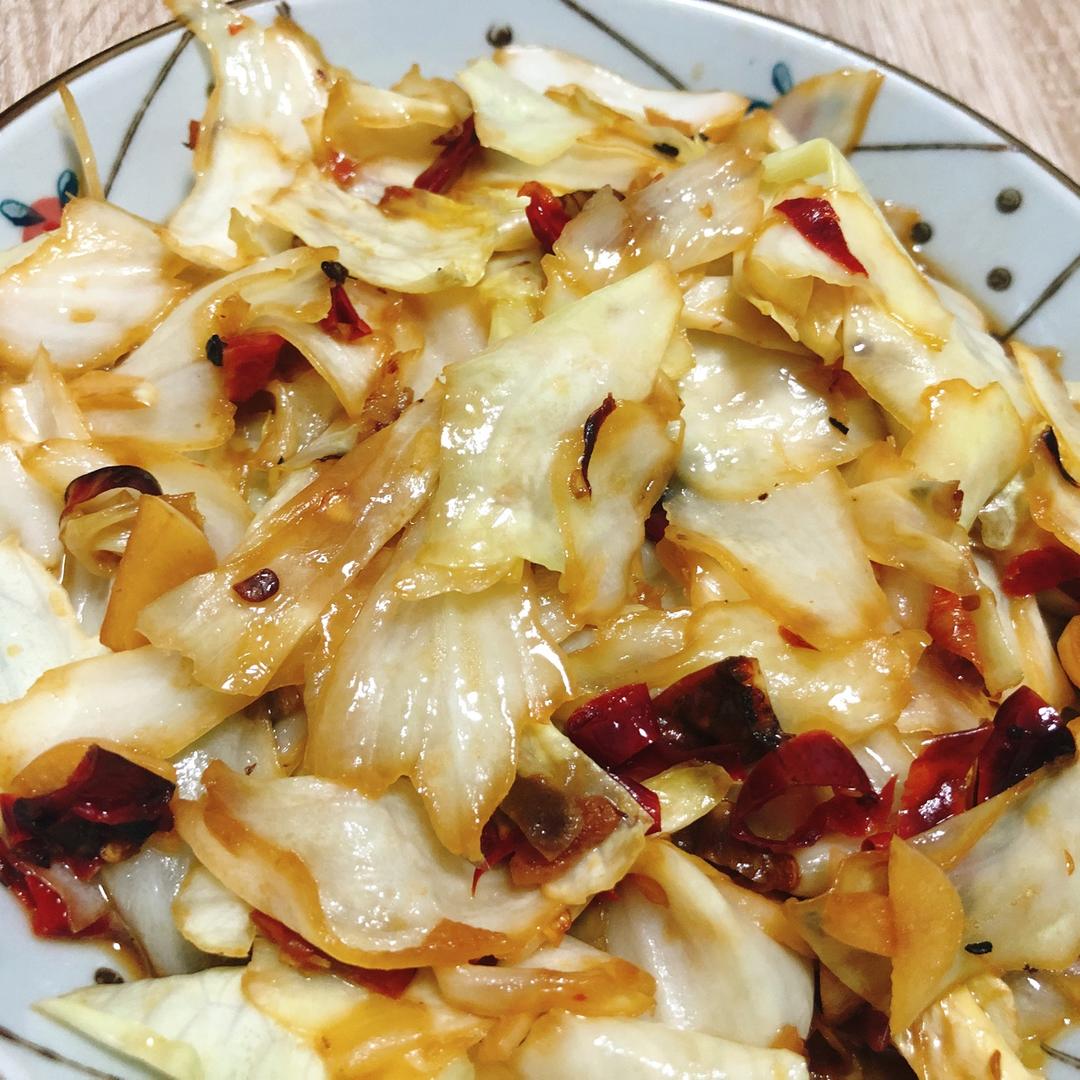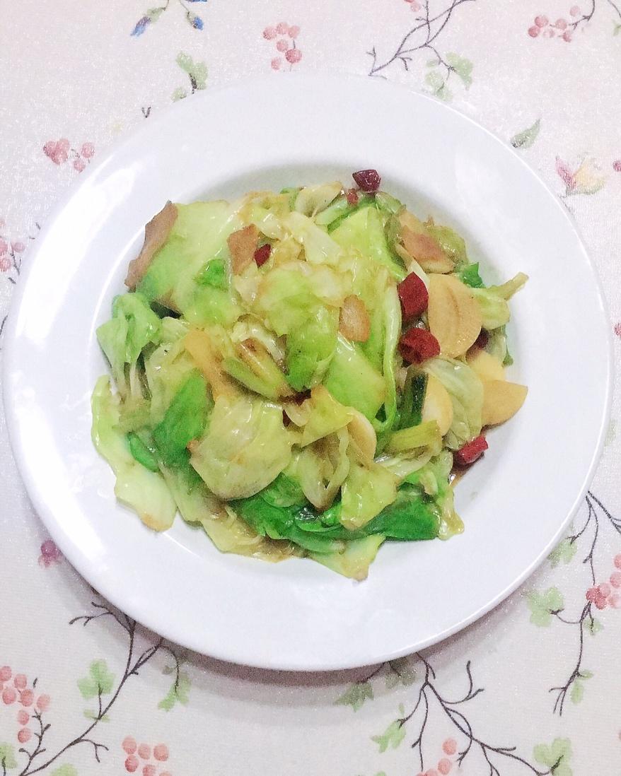 包菜选圆不选扁,不吃辣椒建议放不辣的干辣椒配菜,肥猪肉榨油炒出来的包菜很香很好吃!