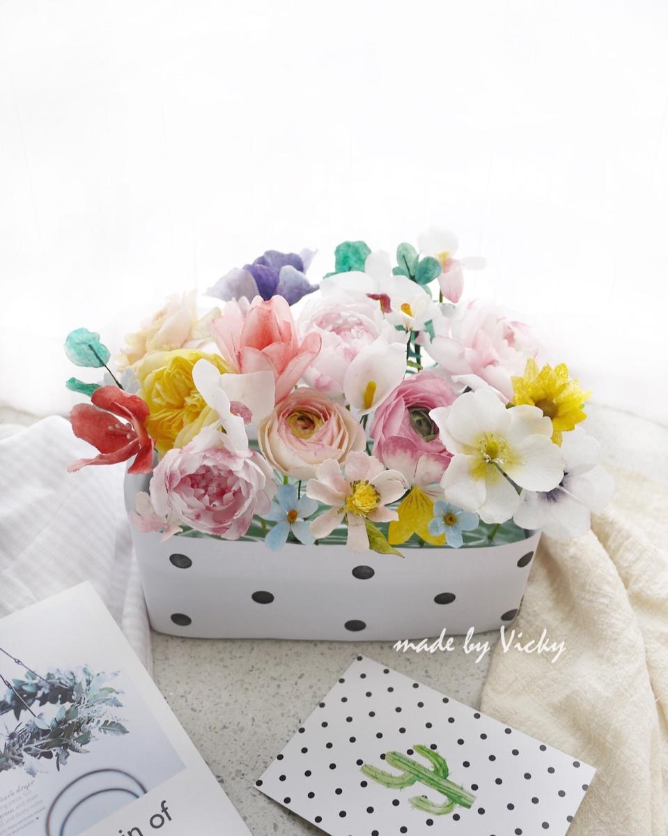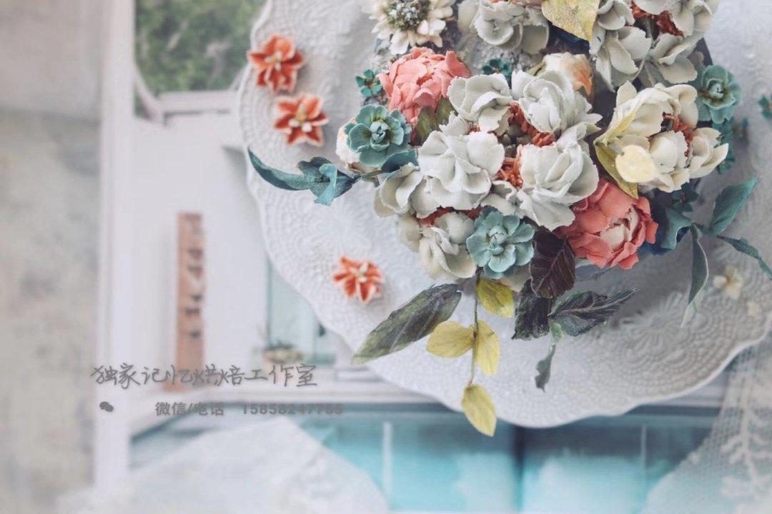 裱花基础课学员作品,学员调的颜色简直是神还原花束原照[呲牙]