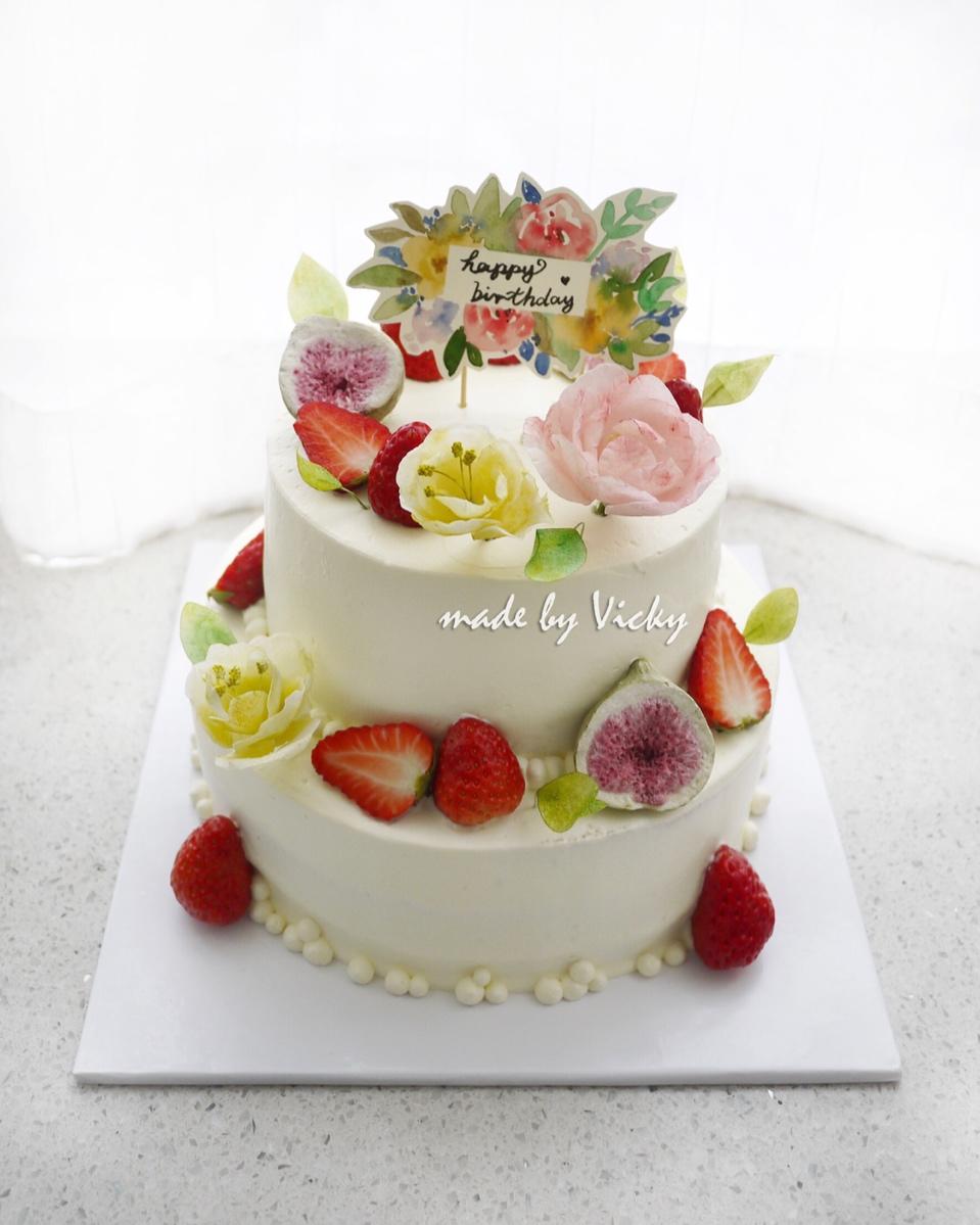 裱花基础课学员作品,来自于台湾的学霸茵茵童鞋,那种一天课只要半天就能学完的学霸[嘿哈]私...