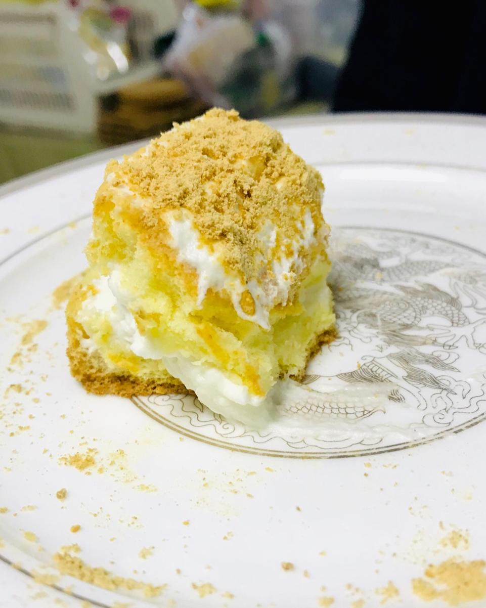 海盐芝士蛋糕,层层撒满自制黄豆粉,味道棒极了!