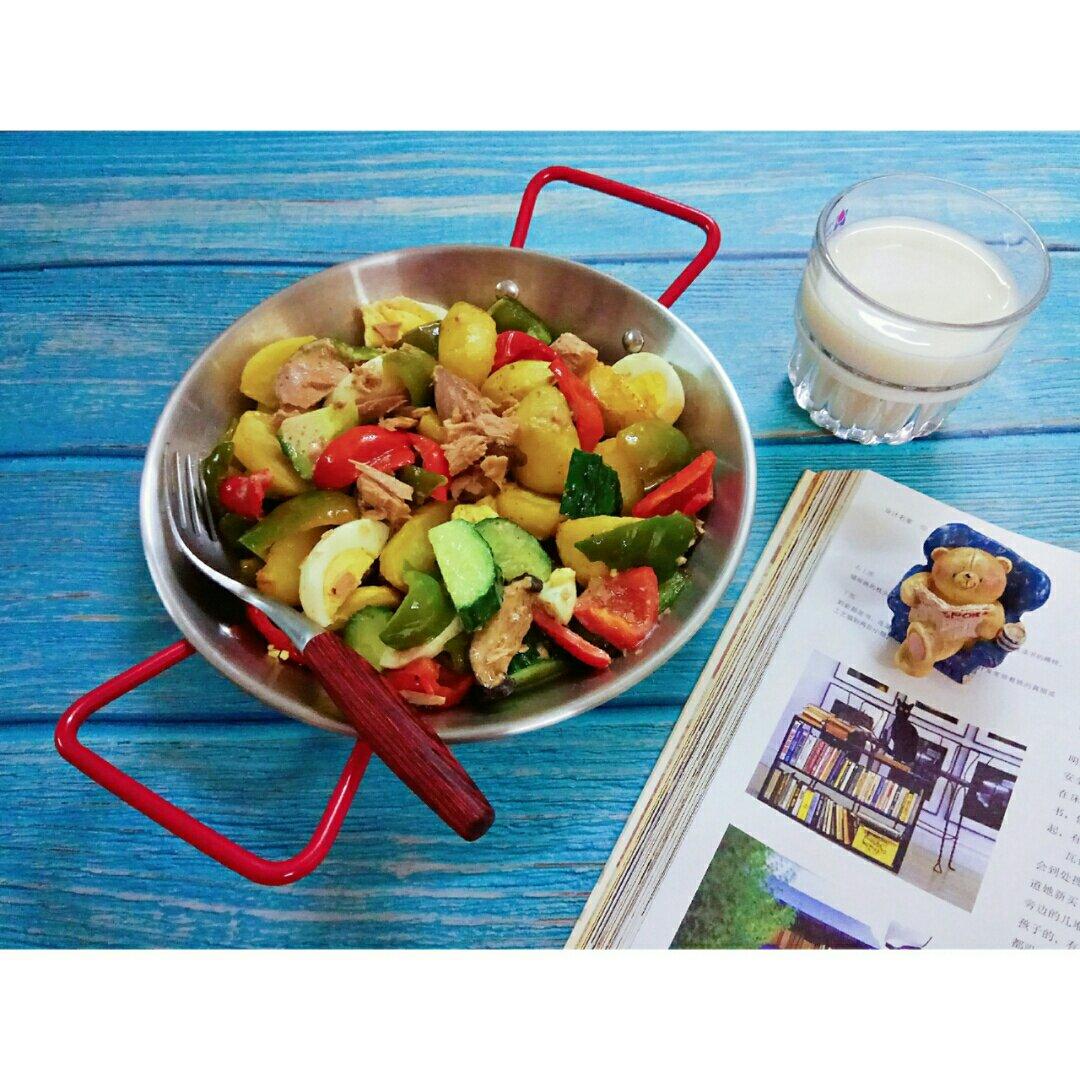 收到一箱金枪鱼罐头,随机决定今儿的早点来份温沙拉。当然,有了空气炸锅就很少再盐水白灼,除...