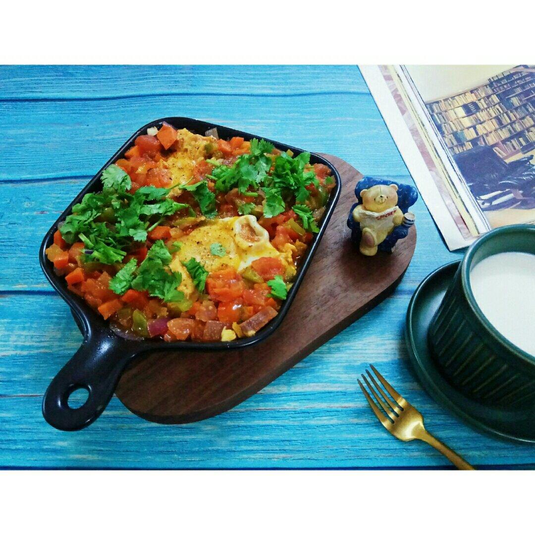 北非蛋,与小熊熊的第一次约饭。洋葱青红椒红萝卜西红柿还有蒜头香菜全部切碎切丁分批炒熟出汁,...