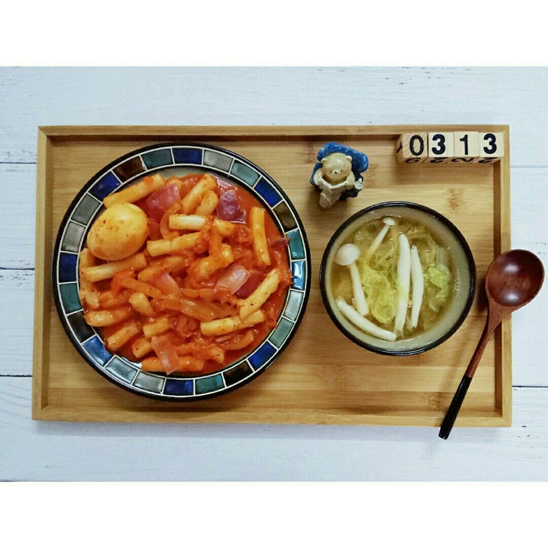 一个人的晚餐自然是最简单,韩式炒年糕+蔬菜味噌汤。有时候想想,不摆盘我就不吃饭了吗?那倒...