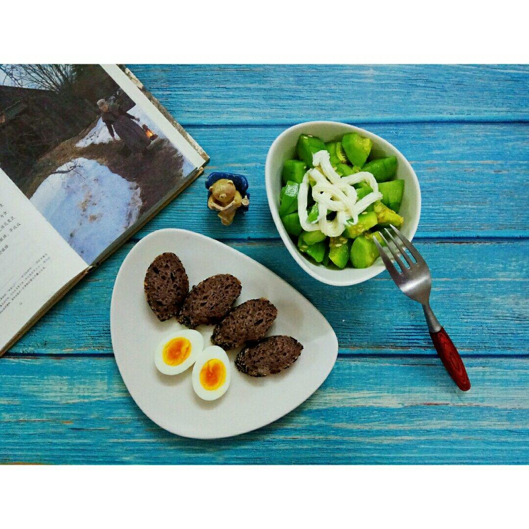 看!还是儿菜。是的,接连两天我每一顿都是蒸儿菜,连早餐都不例外。全麦面包两片,荷包蛋一个...