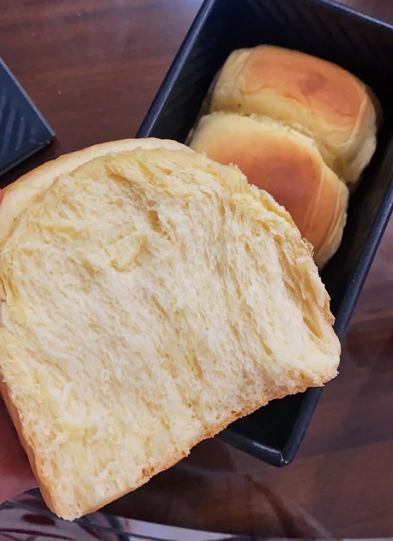 入口即化又很有嚼劲的面包,手撕起来很好玩!用的低糖吐司盒,风炉150度24分钟!颜色超棒!