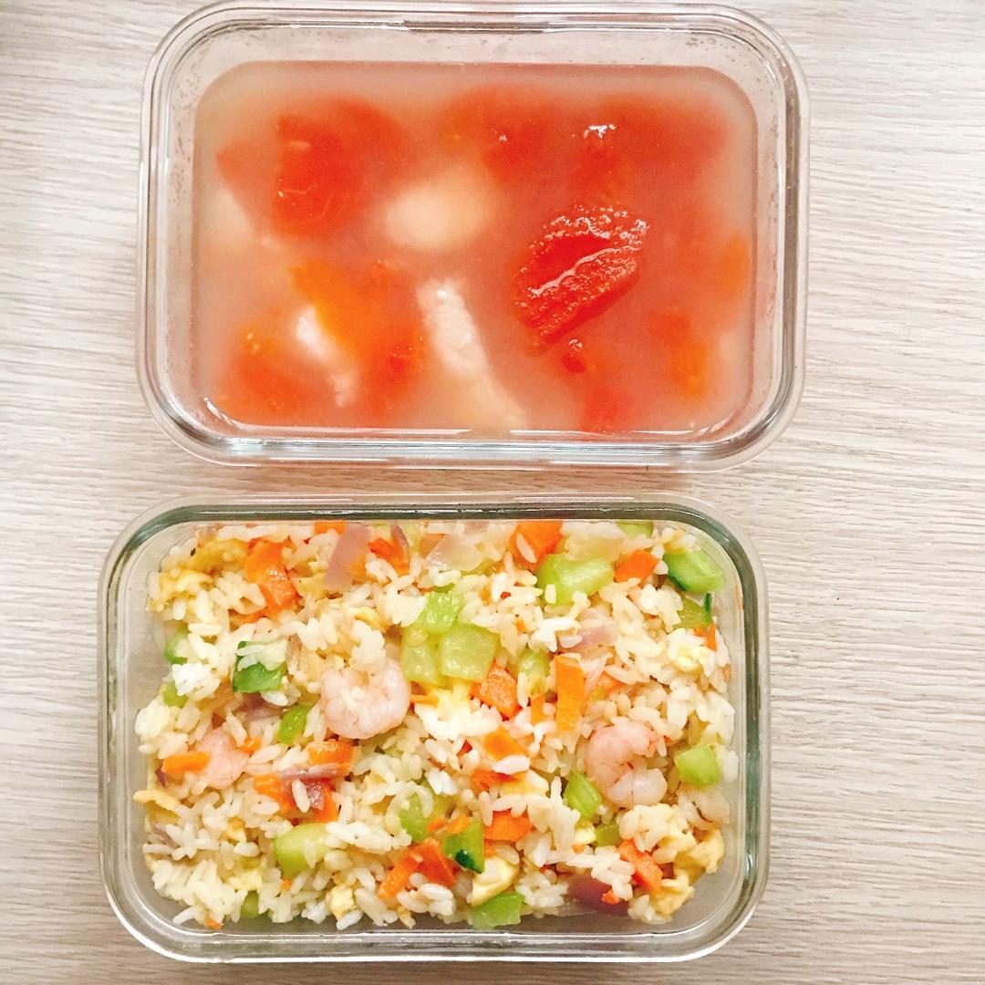 虾仁蛋炒饭➕番茄龙利鱼汤