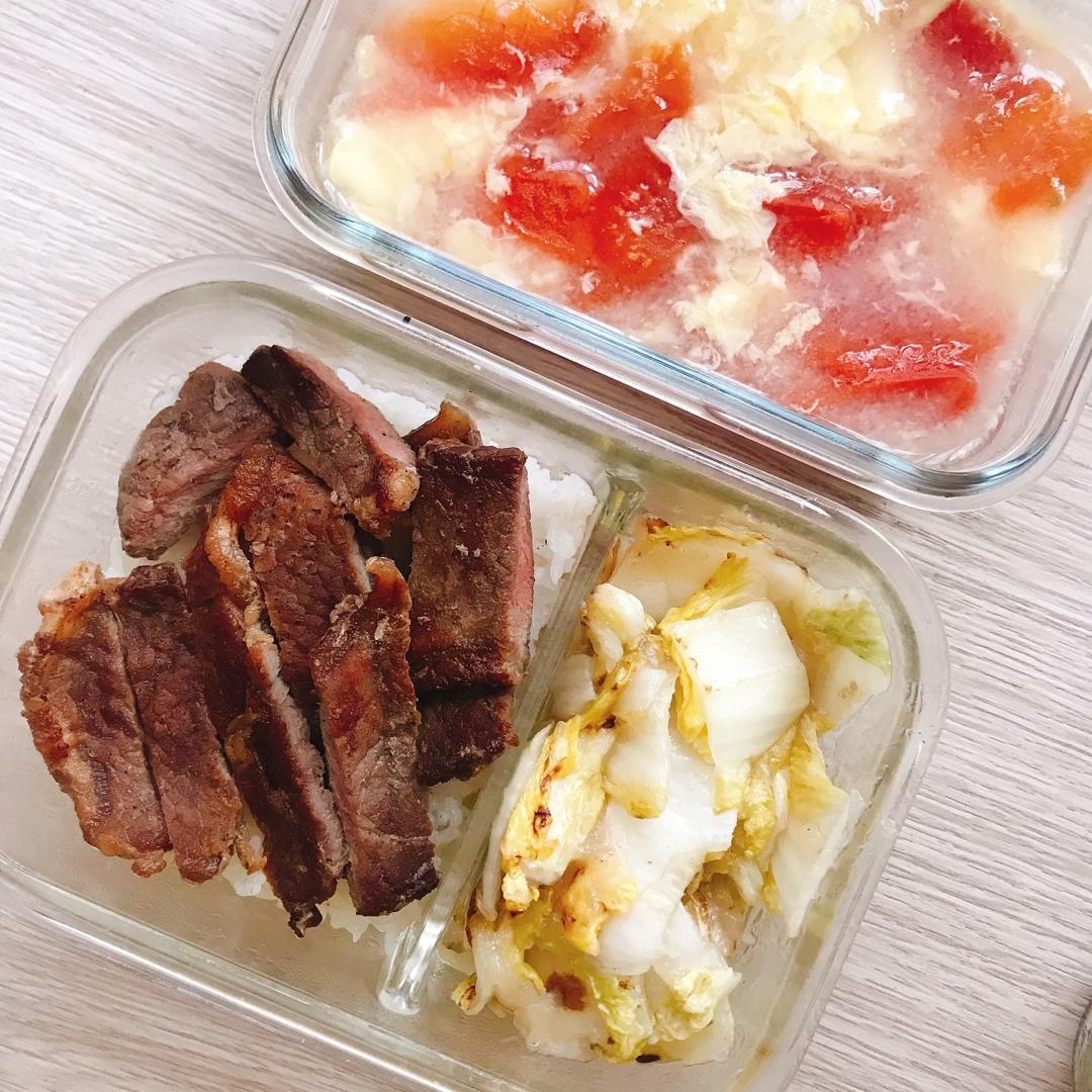 黑椒牛排➕醋熘白菜➕西红柿鸡蛋汤