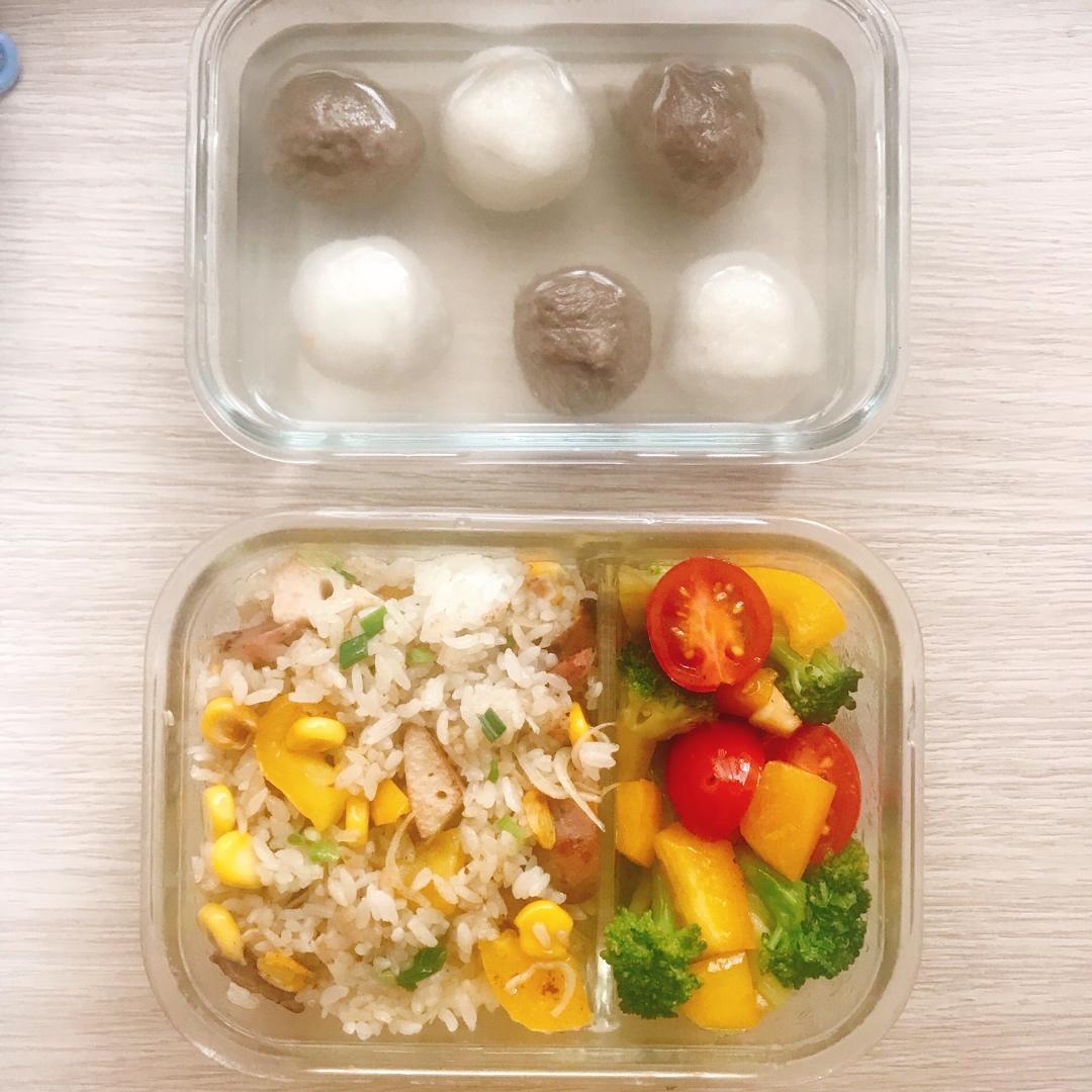 藕丁肉肠银鱼干炒饭➕西蓝花➕黑白丸子...