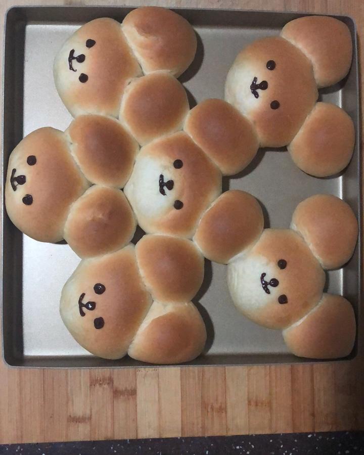 面包方子用了别的,耳朵比想象中大了,烤了25min感觉也有点长了,有的锡箔纸最后都翘起来了,下次改善下应该更好
