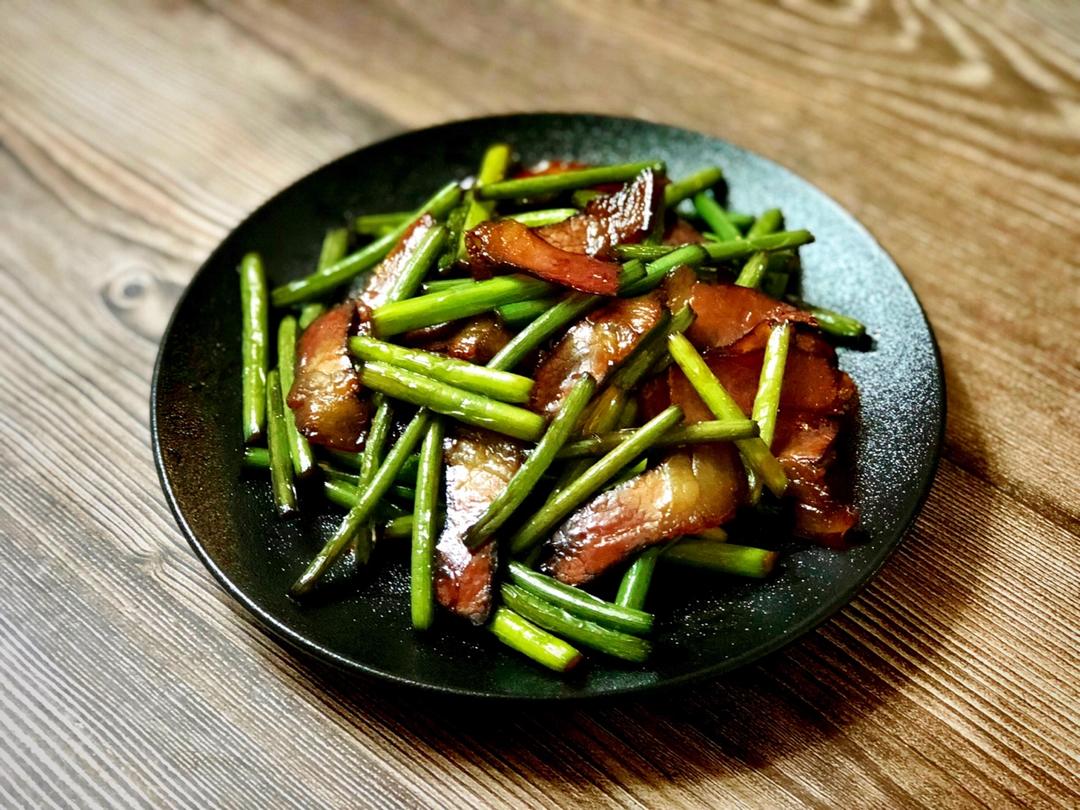 #酱油肉炒蒜薹#