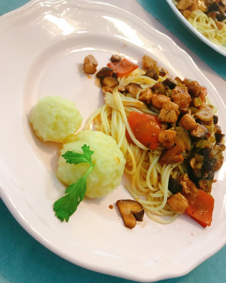 #鸡肉黑椒意面#