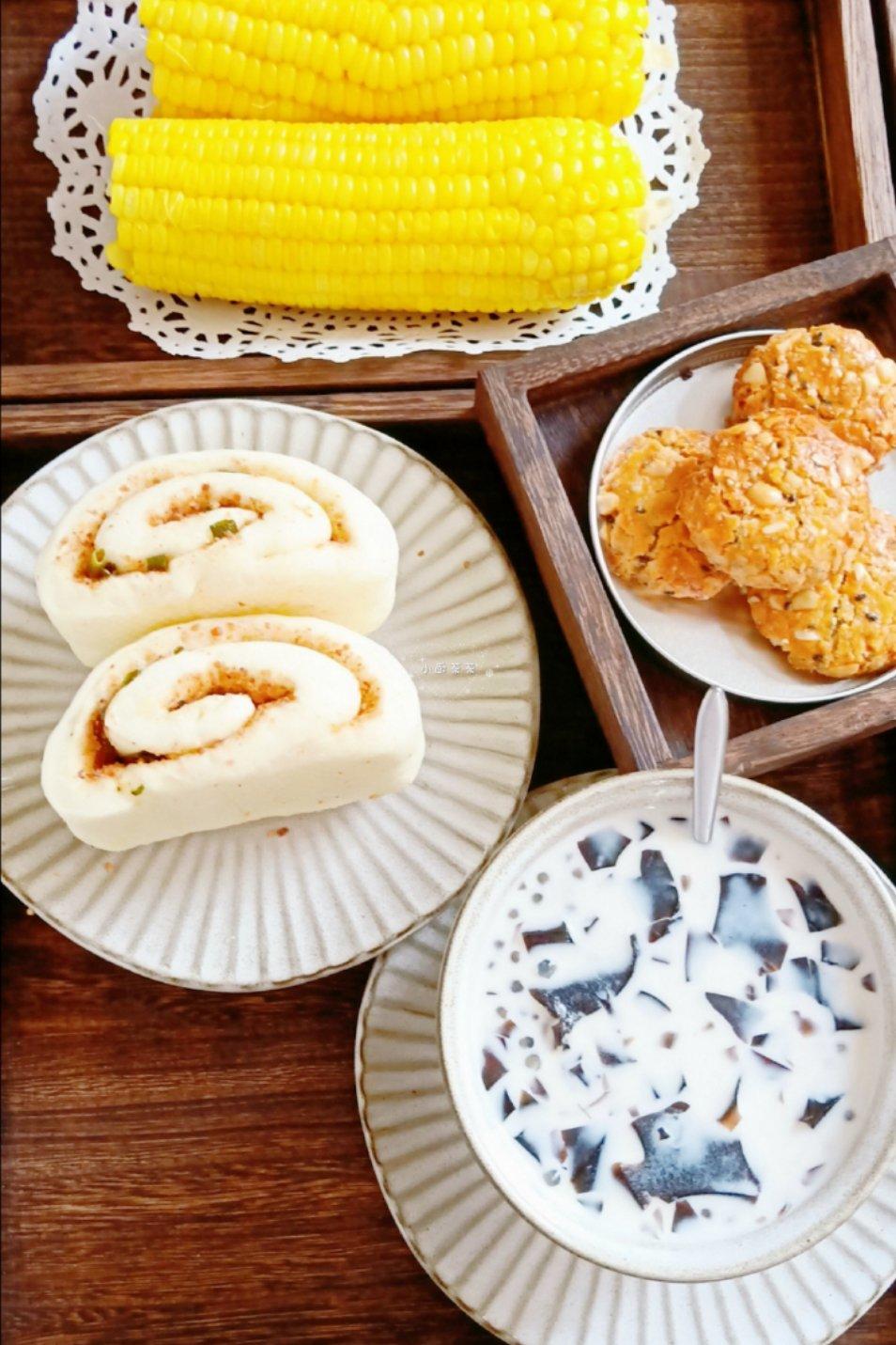 今日早餐:自制肠粉,玉米饺。