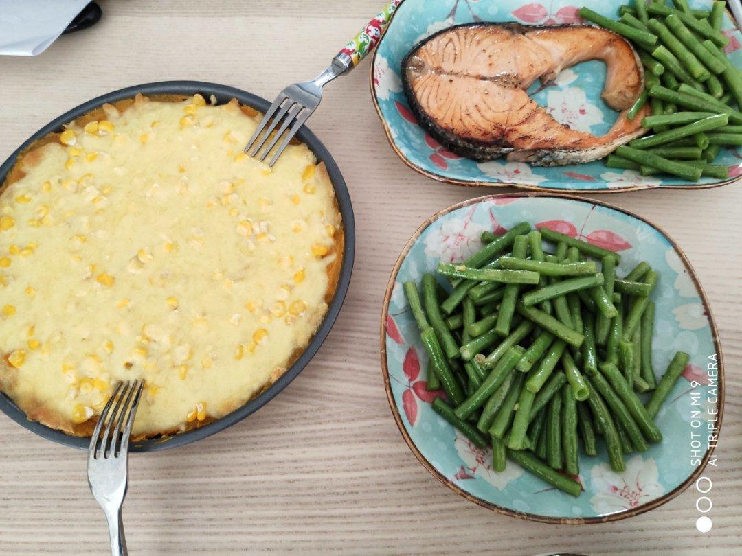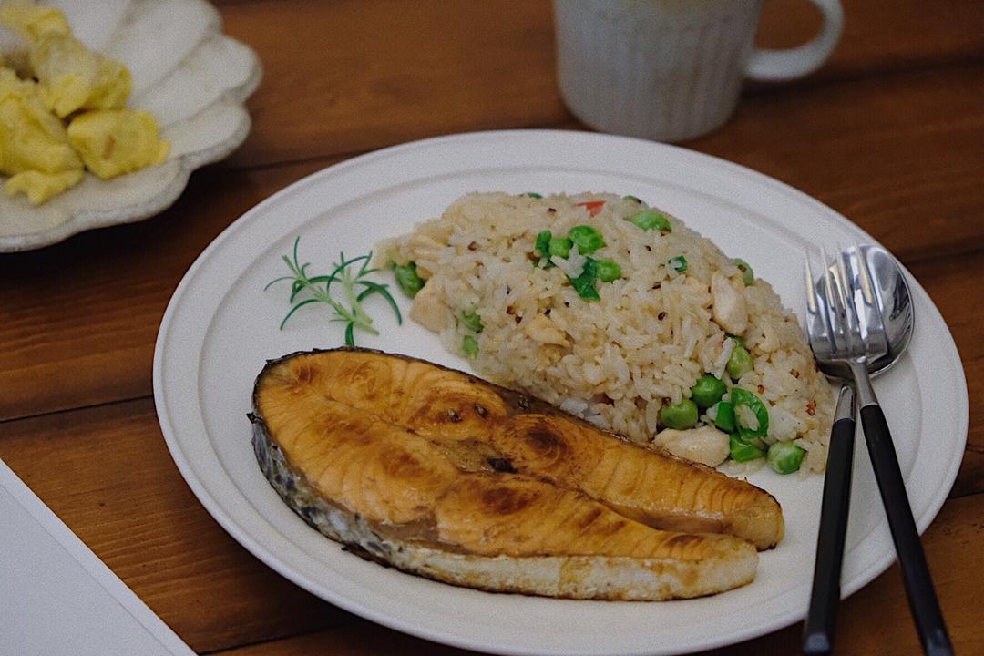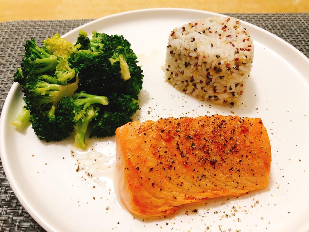 盐煎三文鱼配三色藜麦饭