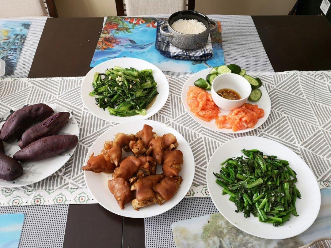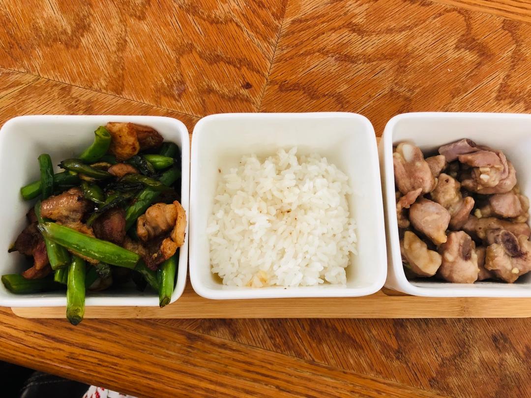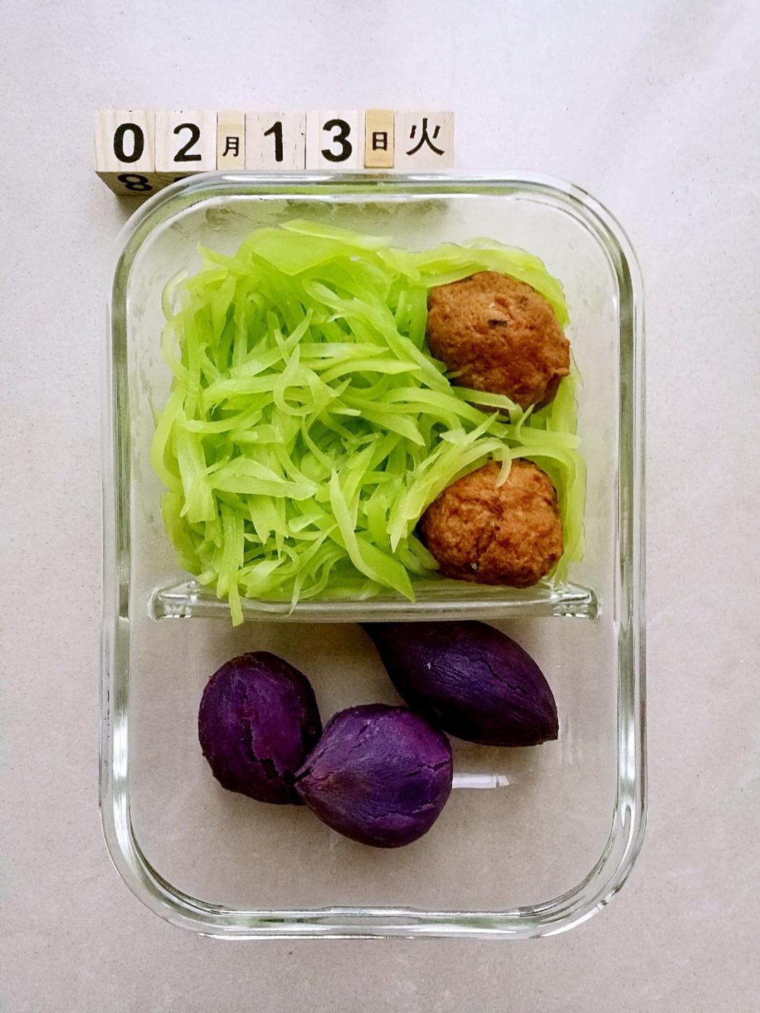 今日便当,红烧肉圆,清炒莴笋,蒸紫薯🍱