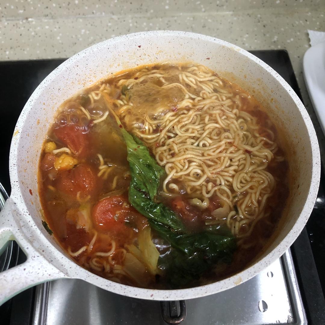 不喜欢吃太酸的半颗番茄就够了,下次可以试试香辣口味的泡面,再加上番茄和老干妈,味道更惊艳吧
