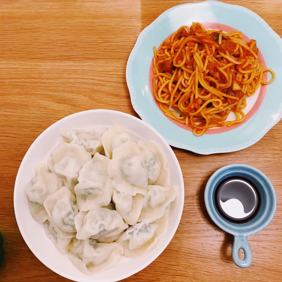 今日午餐:意大利面🍝➕鲅鱼水饺➕饮料🥤