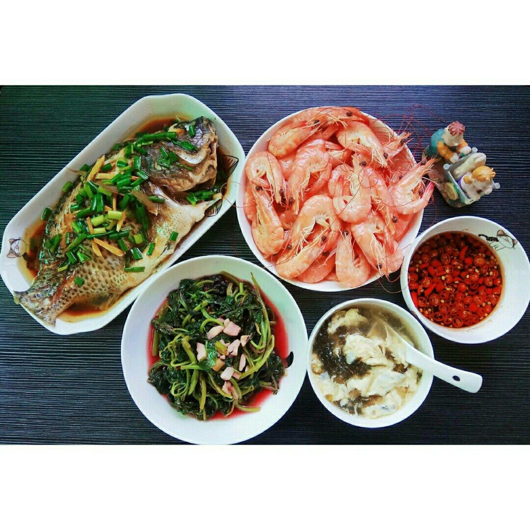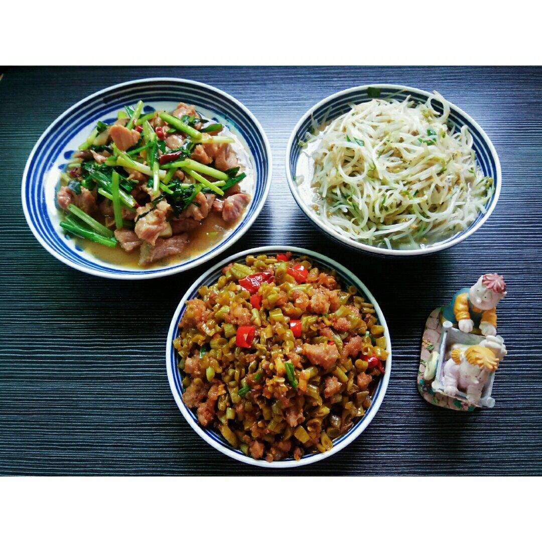 酸菜炒肉片+蒜蓉菜心+西红柿鸡蛋汤米粉;手撕鸡+凉拌青瓜;培根青瓜红萝卜卷+西红柿炒鸡蛋+蒜蓉生菜;蜜汁烤排骨+蛋肉卷+...