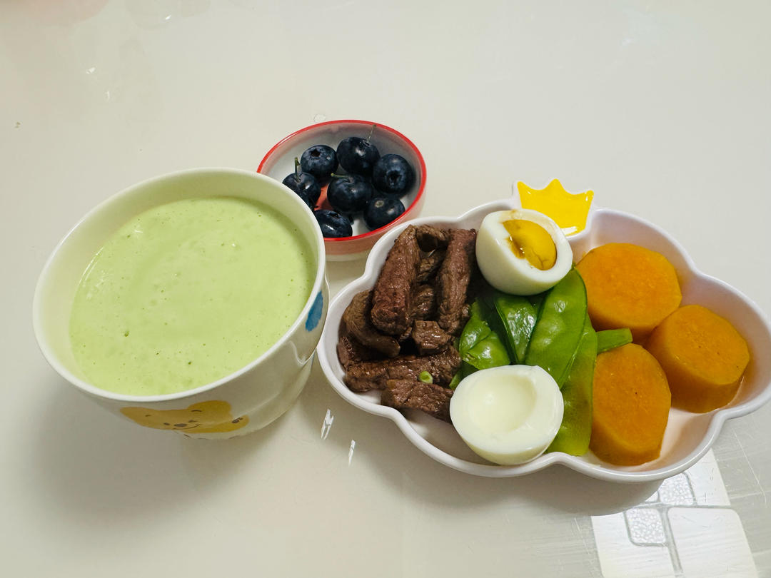 开学第一天➡️煎牛柳🥩➕清水荷兰豆🫛➕蒸红薯🍠➕白煮蛋🥚➕牛油果香蕉奶昔🥑🍌🥛➕小蓝莓🫐