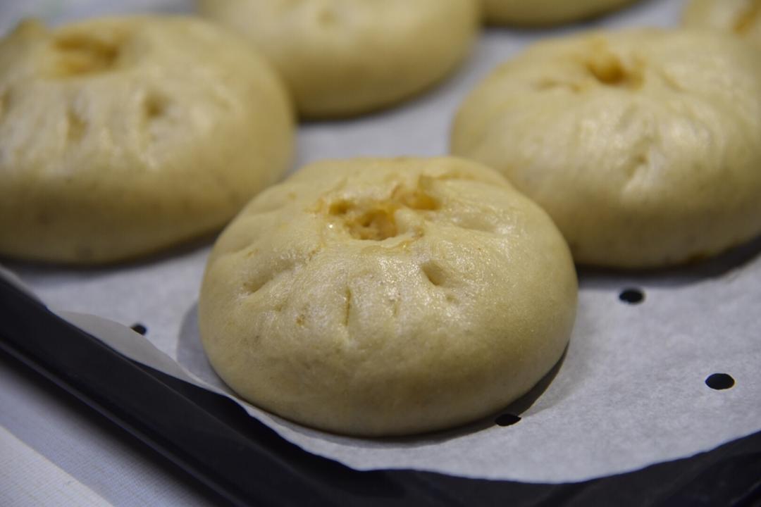 冰箱里七拼八凑的凑出个馅儿来😂包了几个咸蛋黄肉松包子