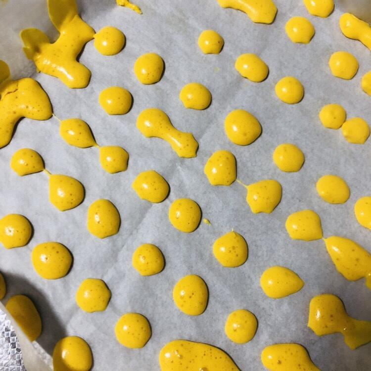 5个蛋黄,30克奶粉,不能用裱花嘴,应该剪小口才对。