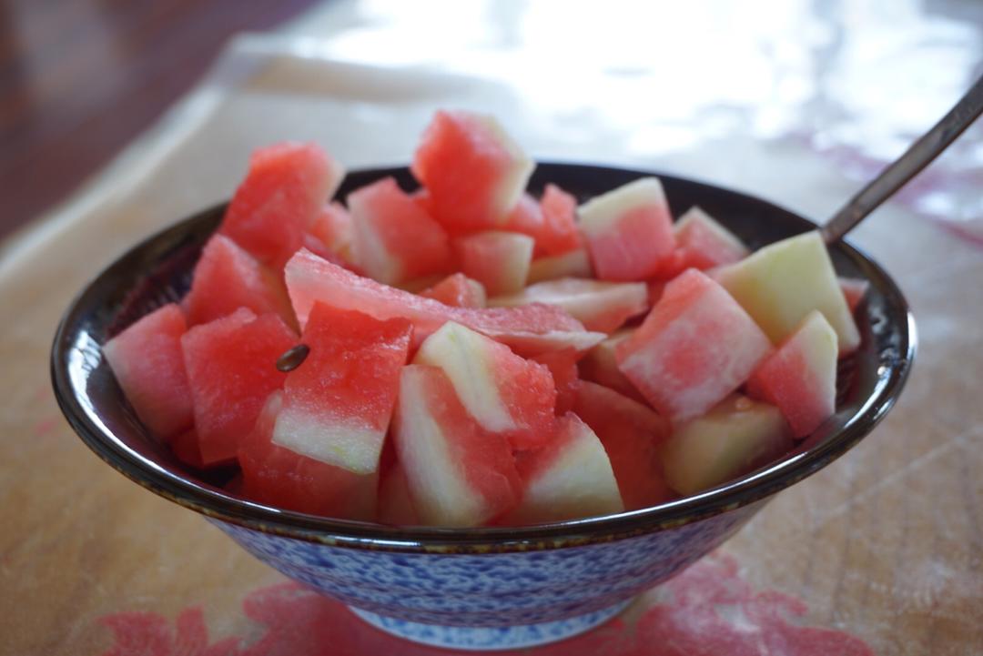 夏日午后在沙发上查作业资料 切瓜吃瓜