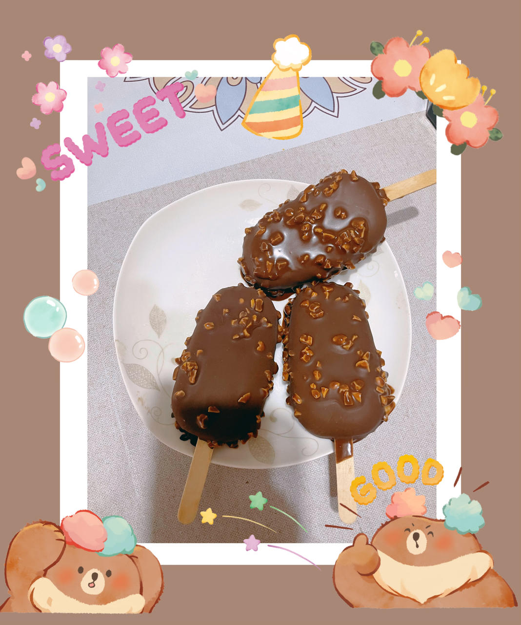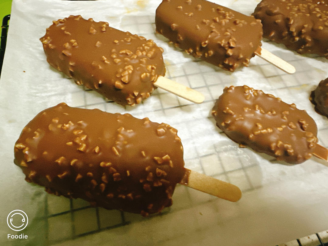 梦龙冰淇淋,按照收藏里面的谱子做的,但是黑巧克力可以替换,不然内芯太苦了。