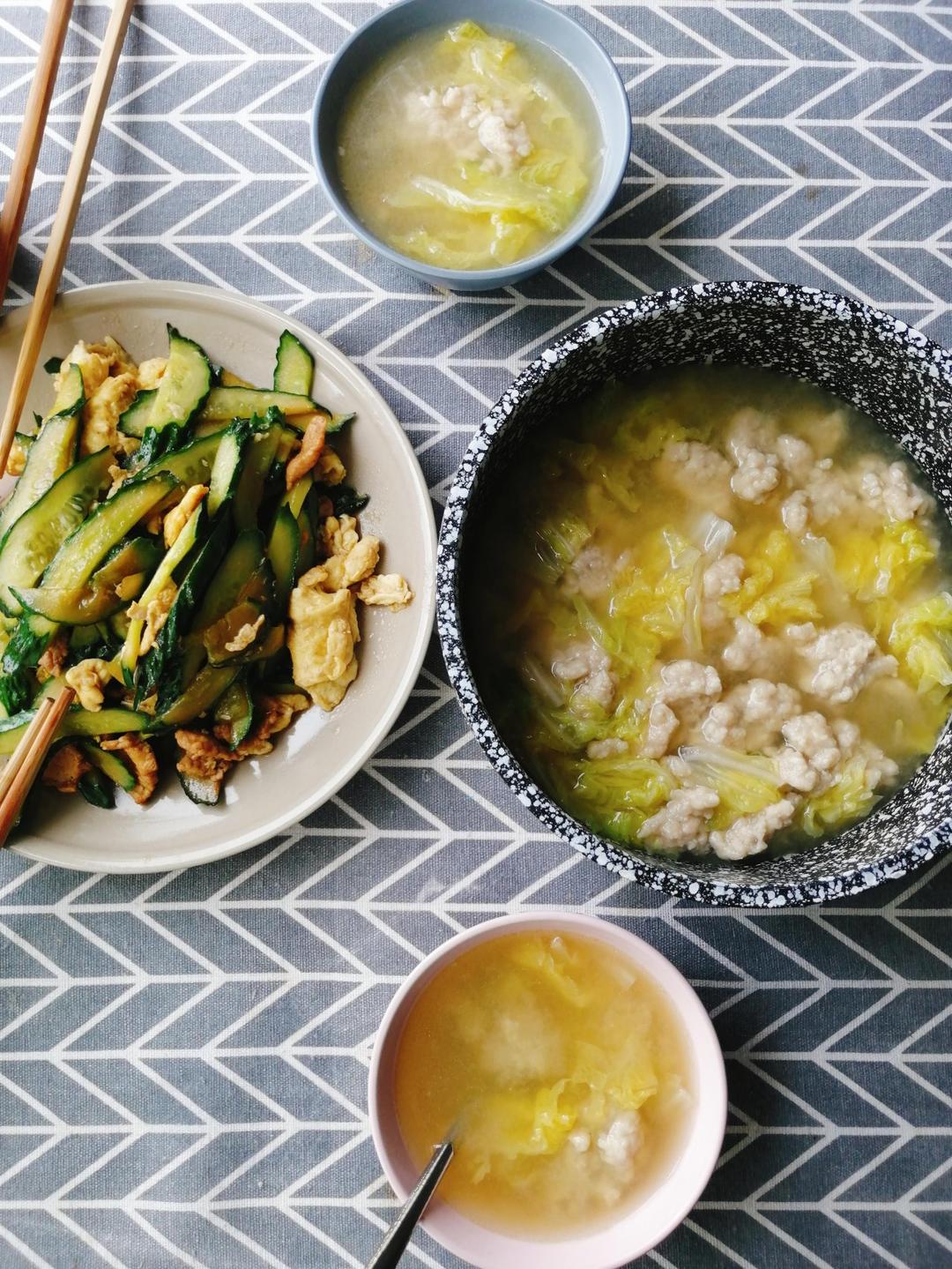 简易版木须肉+肉丸白菜汤