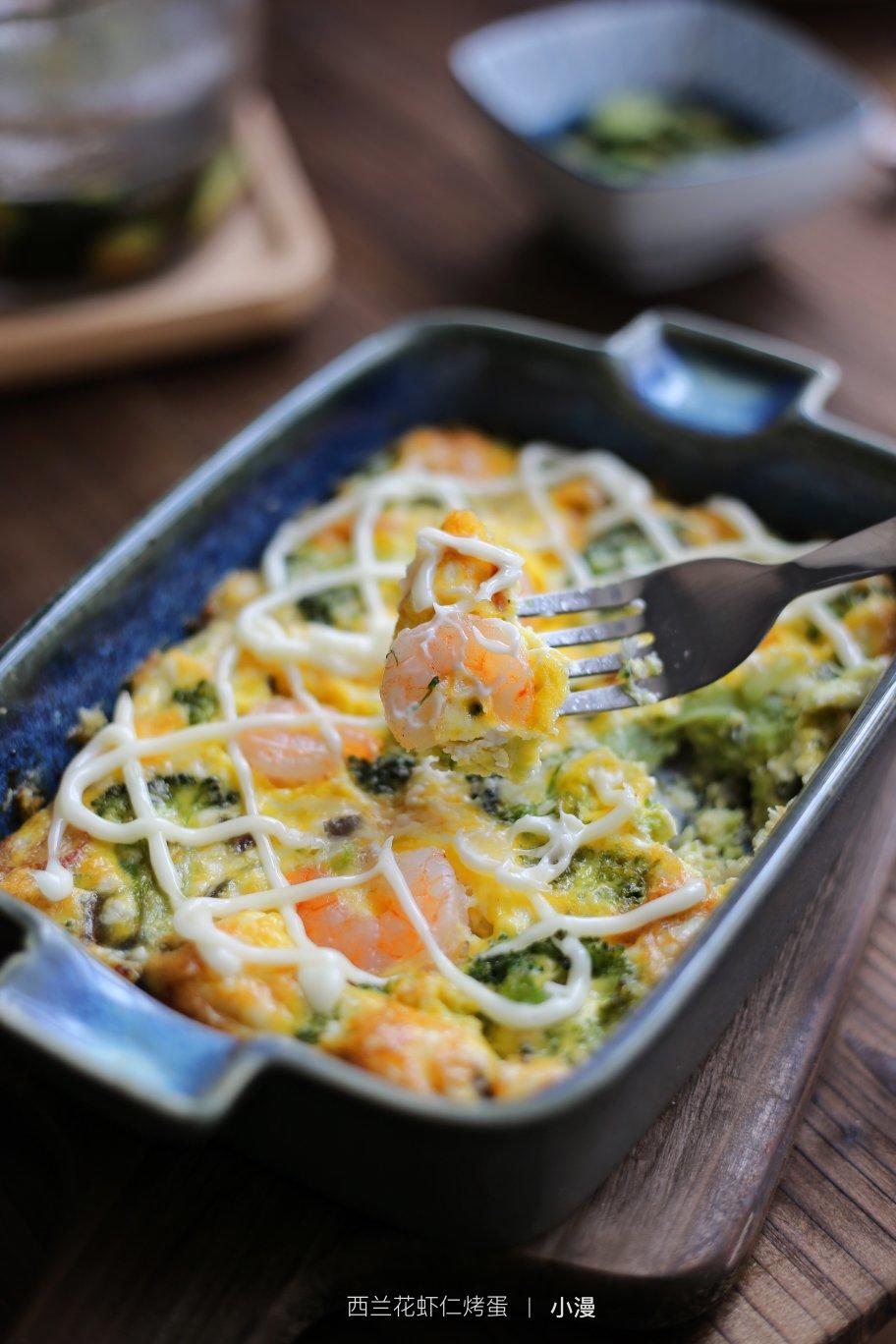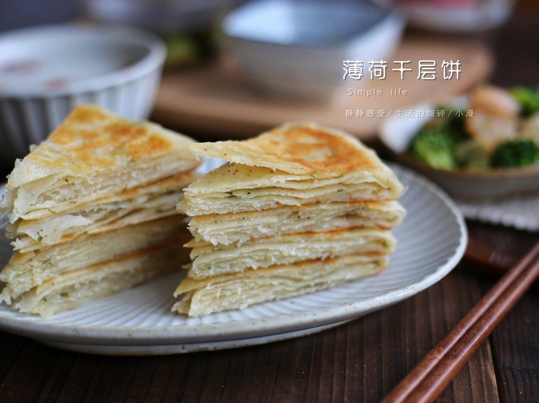 第447天早餐:薄荷千层饼+西兰花虾仁烤蛋+枸杞粥+西兰花炒虾仁+浅渍黄瓜片