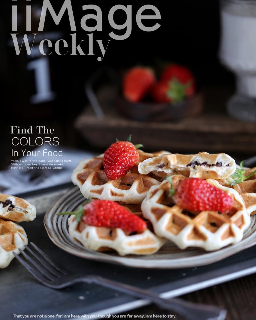 第455天早餐:红豆肉松华夫饼+奶+草莓