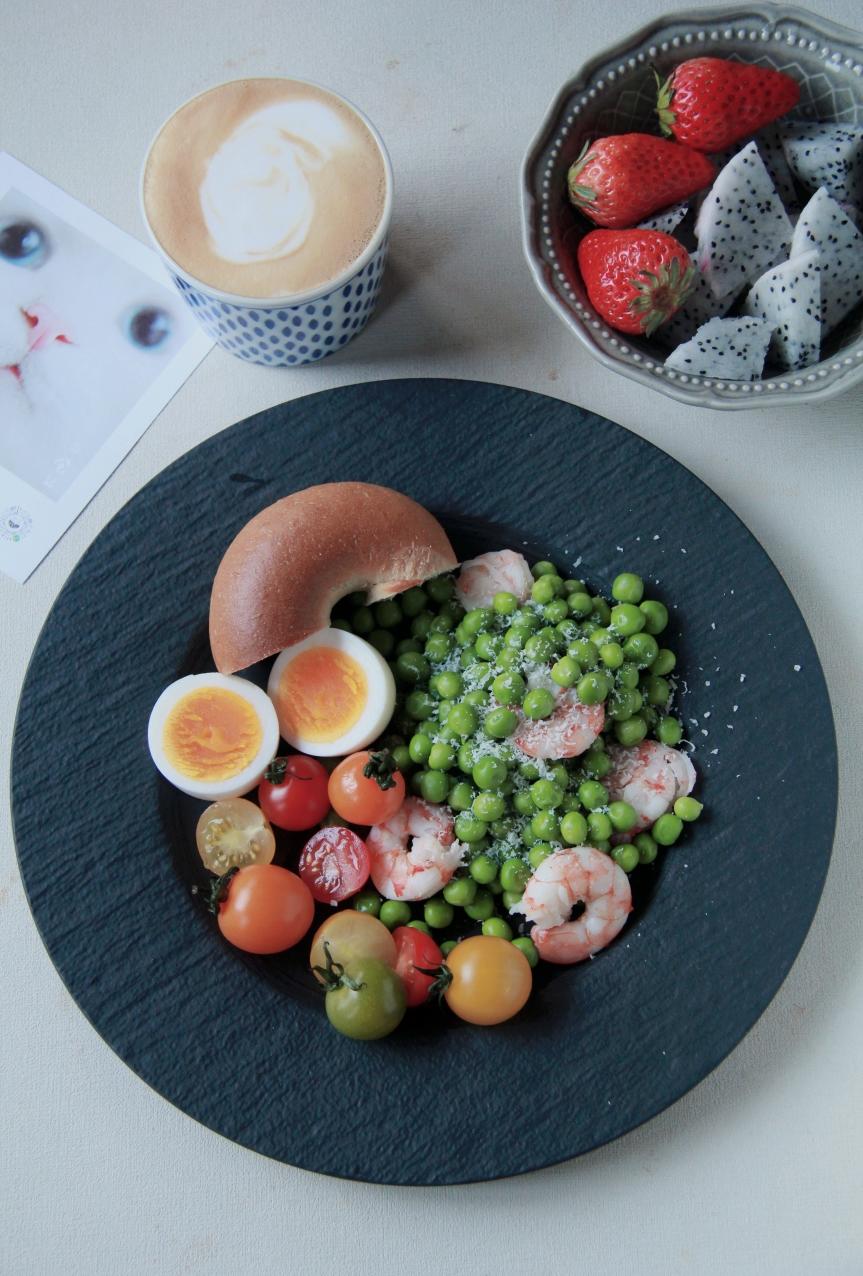 豌豆米水煮的时候放点盐,然后煮虾仁,装盘后淋上亚麻籽油,擦上帕玛森,撒上黑胡椒粉,拌一拌就是好吃的沙拉了~#早安...