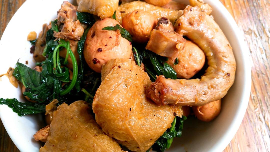 焖乌骨鸡.鱼蛋+包心贡丸