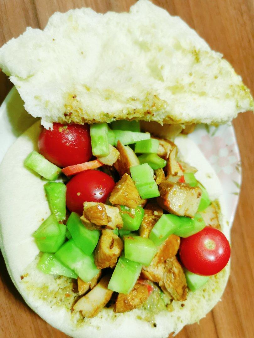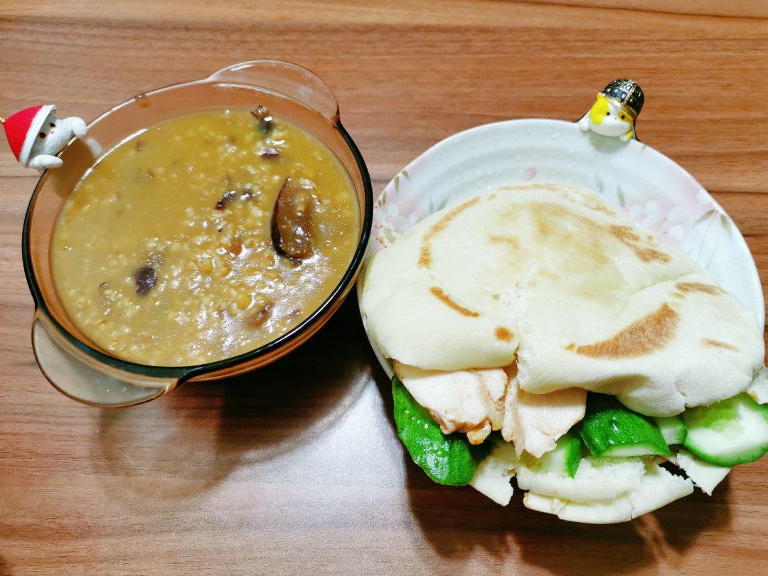 鸡胸黄瓜皮塔饼+红枣桂圆姜汤钢切燕麦粥