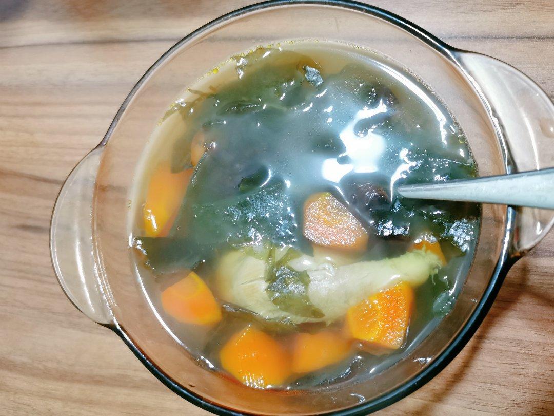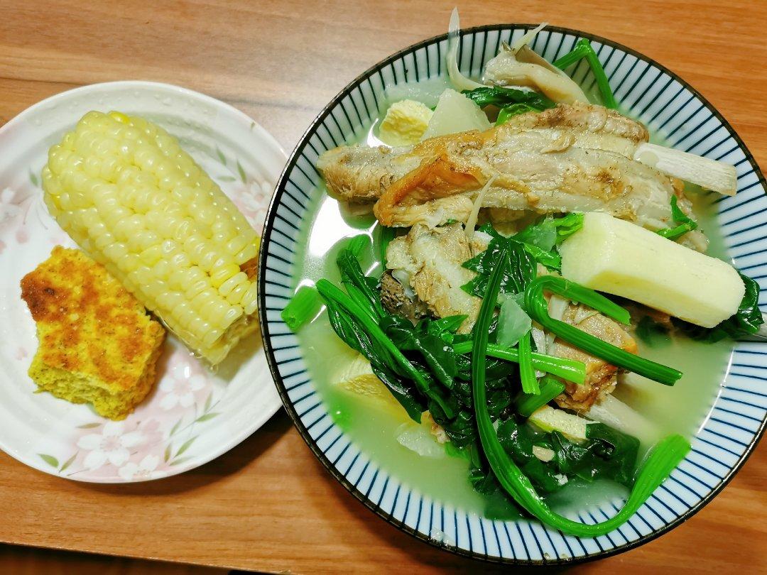 山药萝卜蘑菇菠菜羊肉汤+玉米,玉米豆渣饼